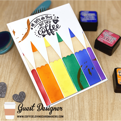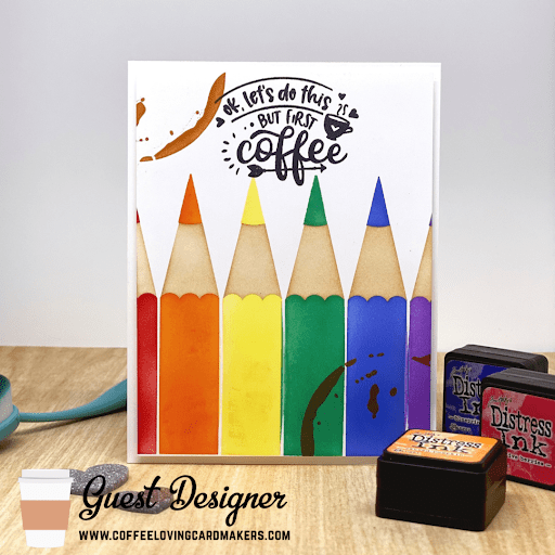 Hello, friends! I am happy to be back again this week with another fun card to share with you. This time, I went off the beaten path a little and chose to use a stencil that doesn’t scream coffee… but it DOES scream CRAFTS! And we all know that coffee and crafts are an excellent combination!