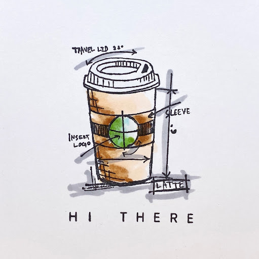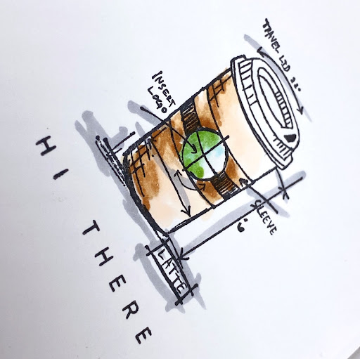 I colored the image with a sort of haphazard feel adding grey highlighting to the sketch line with Copic markers. The lid is colored with a very light cool grey tone allowing to have just enough to be colored, but still show as ‘white’.