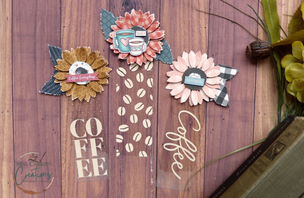 Hello everyone! I am happy to be back as a guest designer sharing some more coffee-loving projects with you. Today, I have a simple Cricut project using materials you may already have in your collection. For those who are not cutting machine owners, this is a project you can easily alter with your dies and acetate sheets.