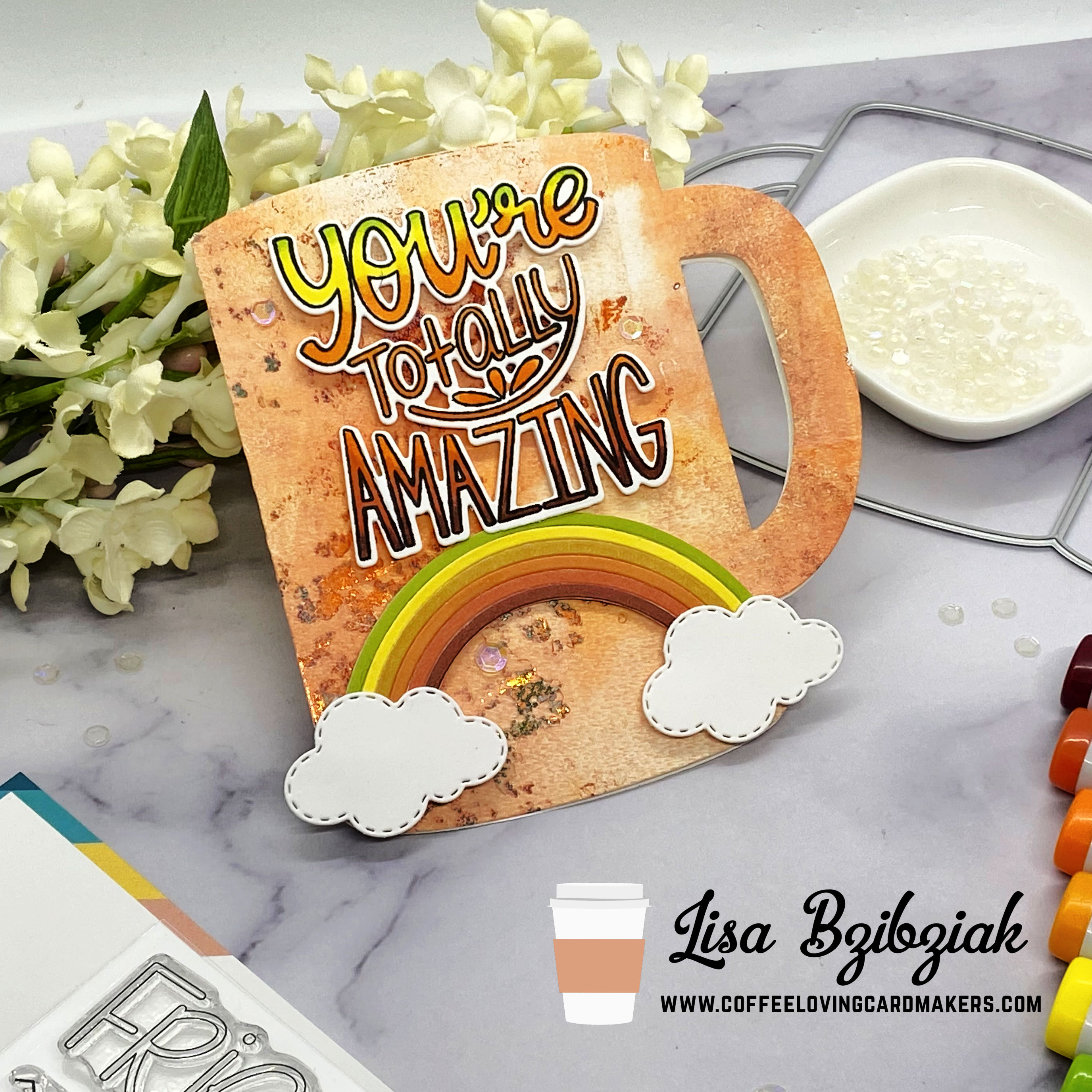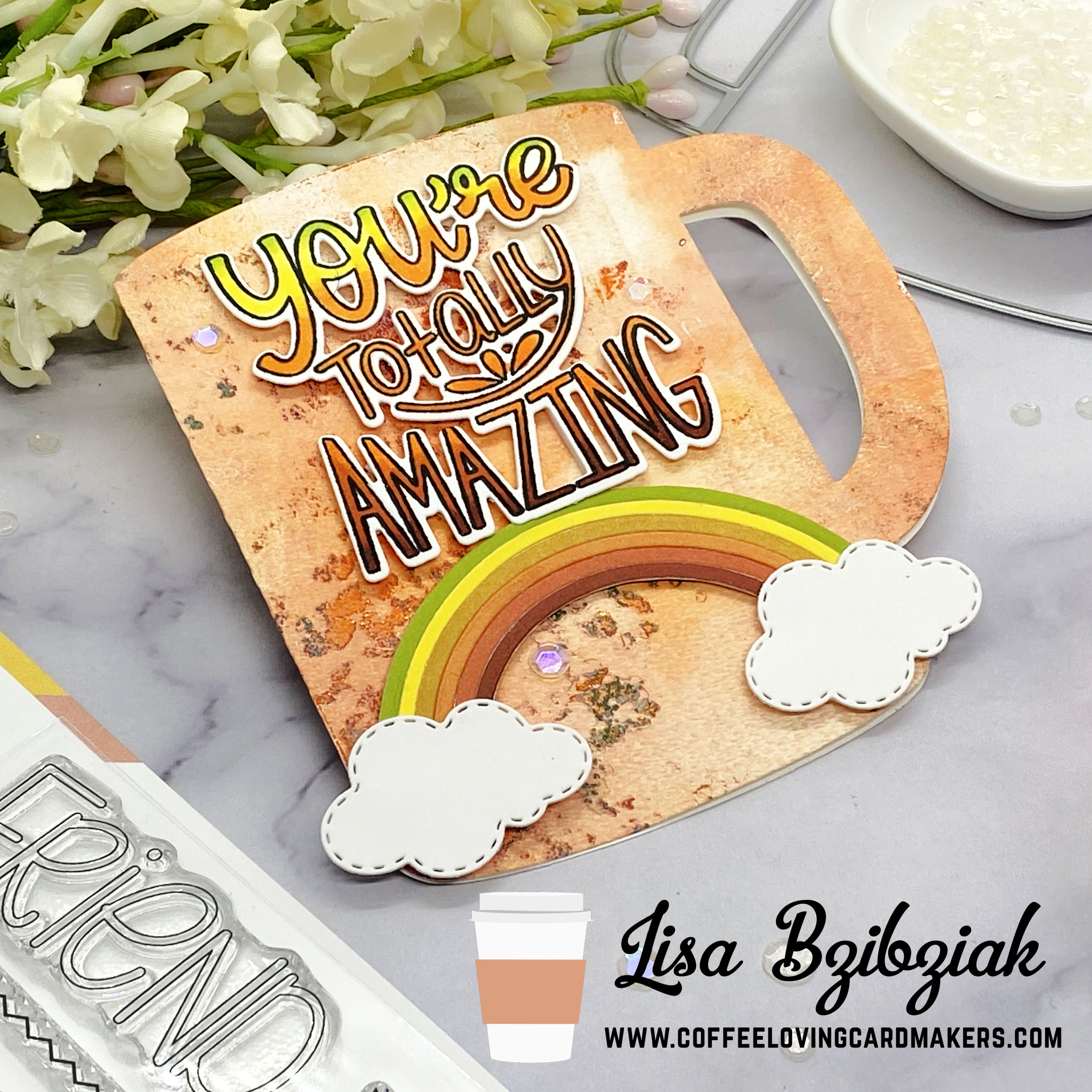 And that sentiment I’ve been dying to use and definitely worth getting the coordinating die! There are a few sentiments like this in the Trinity Shop and I think they’re fabulous! This one is Totally Amazing and is also on sale now as a bundle and half off as well! I colored it in similar colors to the rainbow… I love it! As I say… I’d buy that mug!