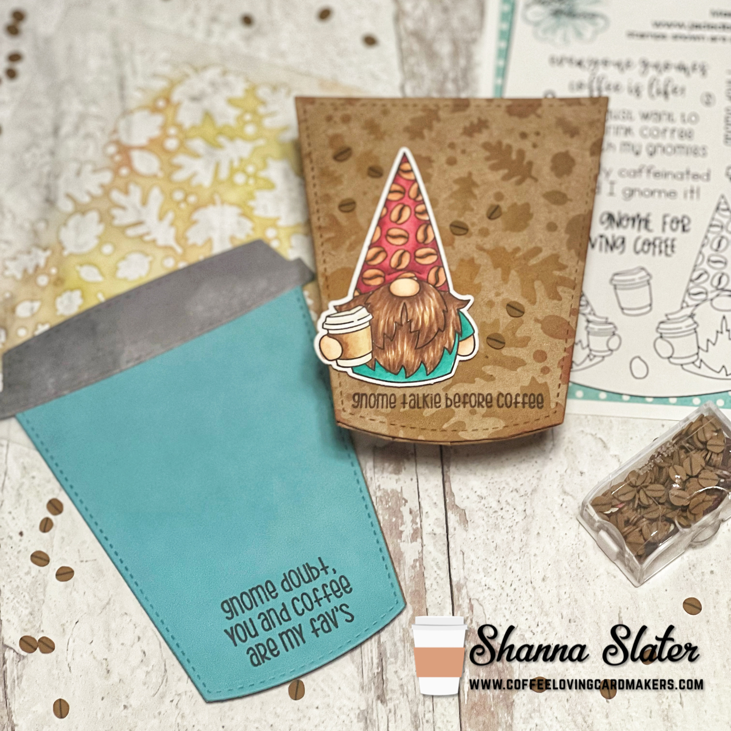 I pulled out some of my more recent goodies I ordered finally from super sponsor Jaded Blossom for this week’s Mugshot Monday! I absolutely love the Coffee Slider card, and the Gnome Brewed set was calling my name for sure!