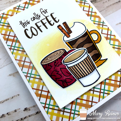 I made this Fall-ish caffeinated card for a co-worker celebrating a big birthday. Every year, I make her a coffee-themed card because she is an avid coffee drinker. And to be honest, I’ll take any excuse to make a coffee card.