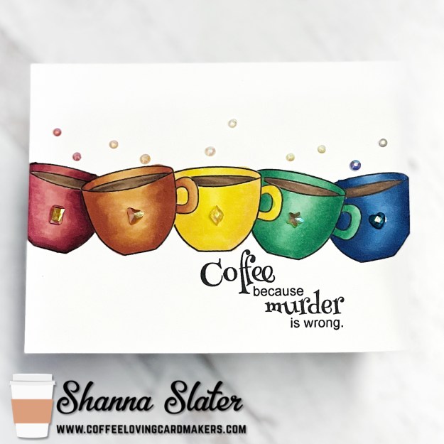The Coffee Cup is a a single stamp called Cup Lrg. and the sentiment just cracks me up!  The sentiment is called Coffee Murder.  I mean–it’s truthful!?! LOL. You can check out the whole release here if you want to see more—I have a few more cards in the works as well!