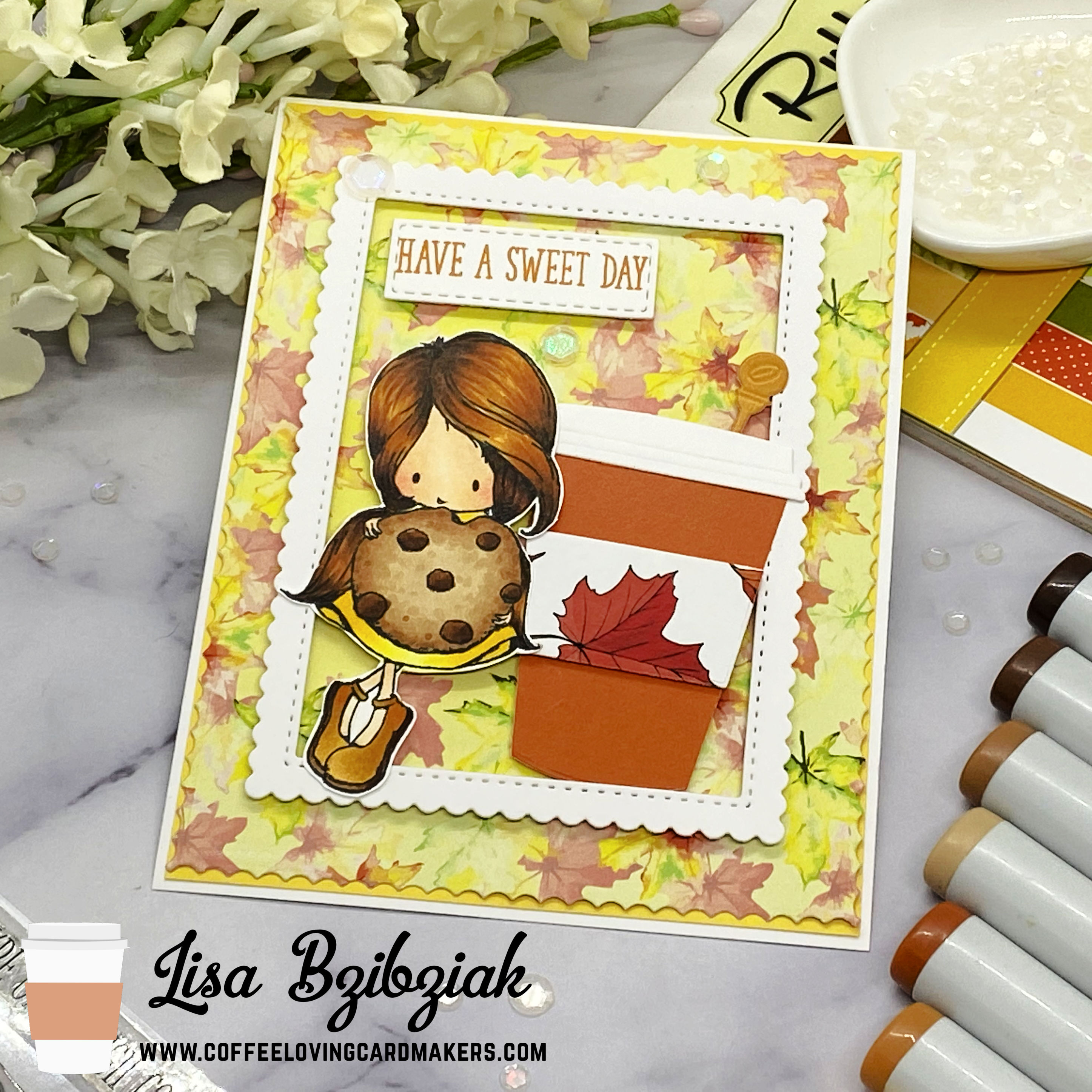 Welcome back! I’ve got some autumn caffeinated inspiration for you today! A little MFT with the Friend Chip stamp I got from the Scrap ‘N Stamp shop!