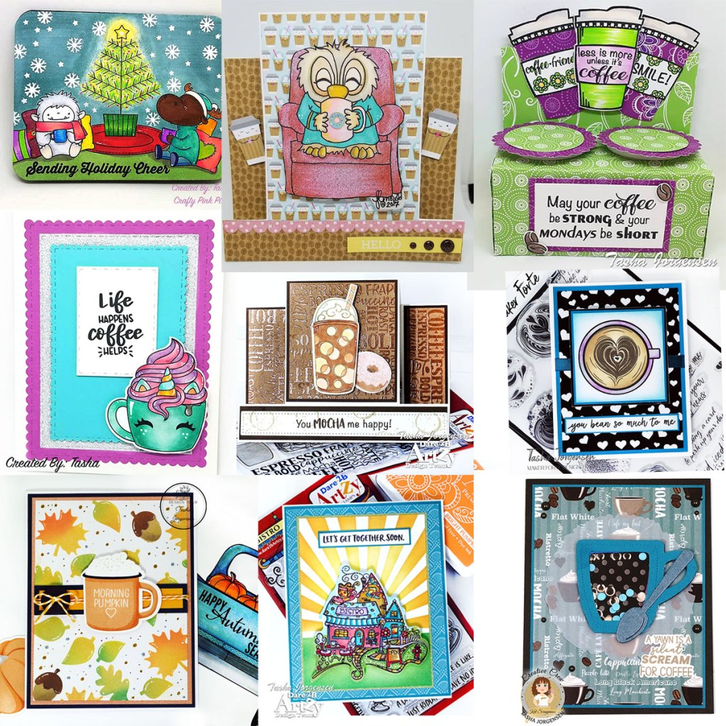Are you a member of the Coffee Loving Papercrafters FB group? It’s a great bunch of caffeinated papercrafters sharing all things, well, caffeinated. We have some exclusive events and contests, only for the FB group. Recently I posted my last 9 National Coffee Day projects and challenged the group to do the same. Here’s mine: