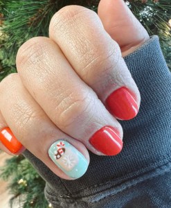 Happy Monday and welcome back! Are you like me and still creating holiday cards? The card I’m sharing today was inspired by a coworker’s manicure. Kiersten ALWAYS has the cutest nails and her current mani featured a nail with a cute, peppermint mocha mug.