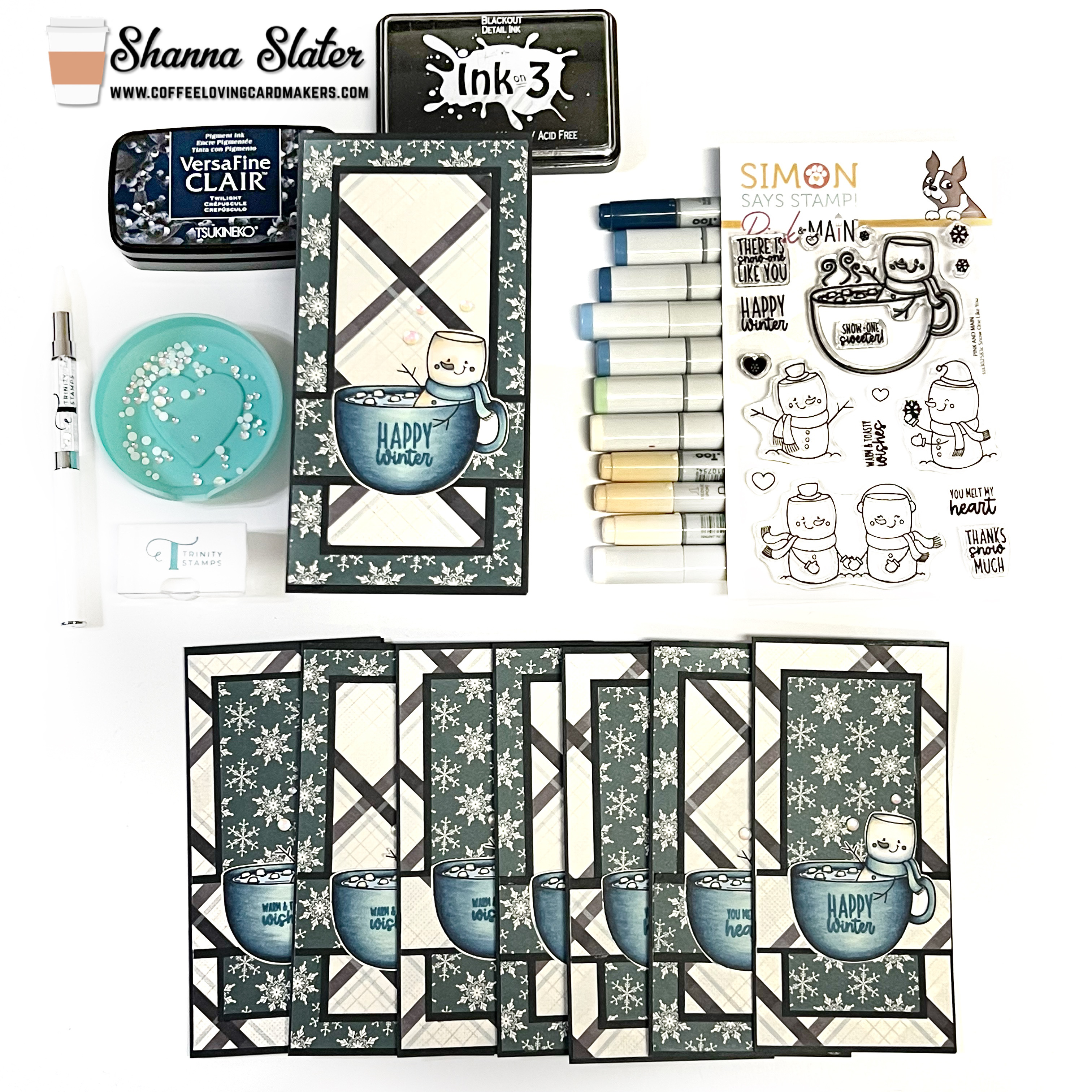 Hello and welcome back! This is Shanna today with another Mugshot Monday! Today I am featuring a fun mass-produced card featuring the 2022 Stamptember set from Simon Says Stamp and super sponsor, Pretty Pink Posh! I fell in love with these cocoa-loving marshmallow friends when I saw the set, but only recently got around to inking it up.