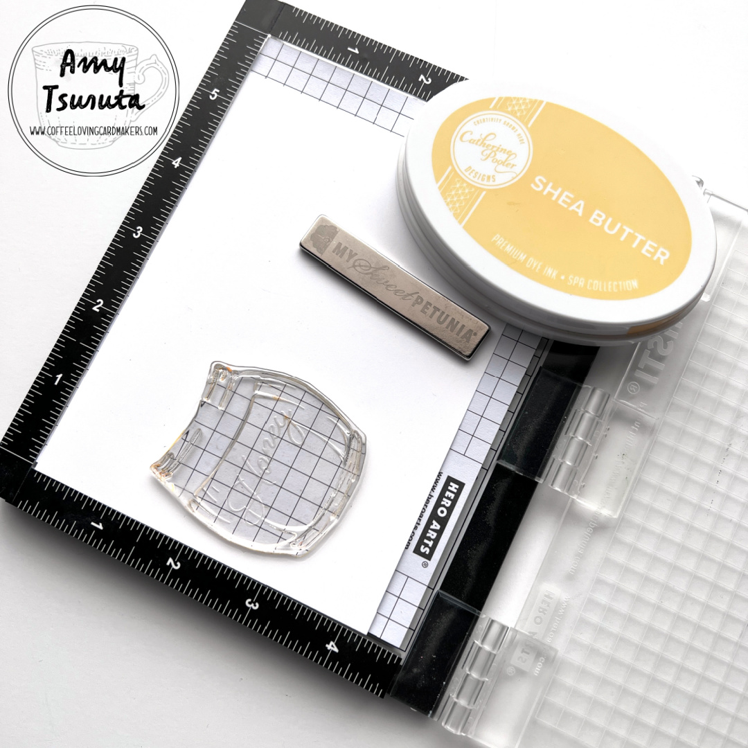 I make sure that the image is solidly in the space and then close the lid of the Misti, insert the die cut piece and then stamp. I remove the stamp and do it all over with the next stamp. I still hold my breath when I do this process. I’m super happy how the word ‘Honey’ on the honey jar turned out. It looks pretty white and not muddled much [wink].