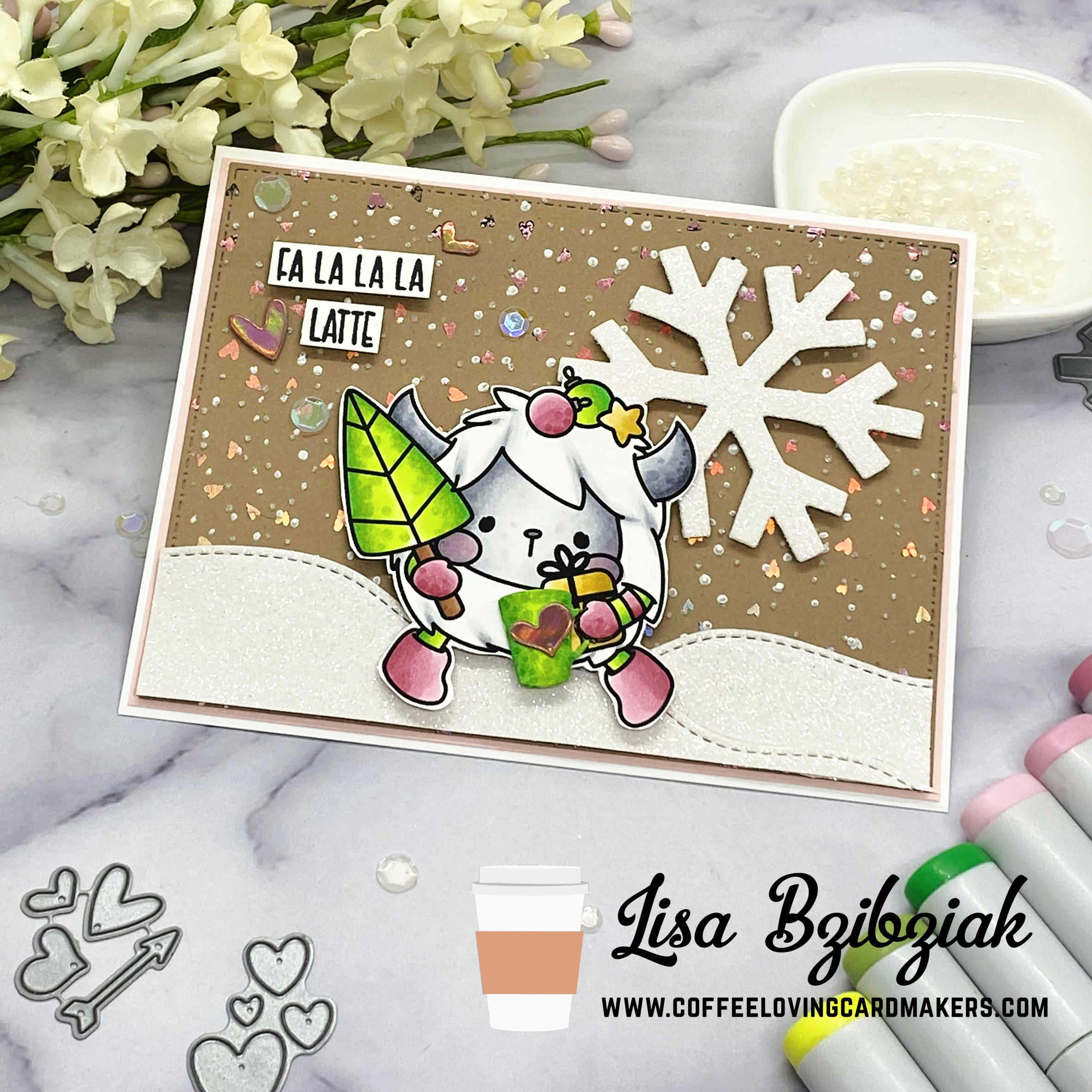 This Sweet Yeti set stole my “heart” when I saw it! This image didn’t include the cup, but it’s easy to add a die cut if you have all the cups in all the sizes…lol! (I have a lot of cups). I used a craft knife to cut around this yeti’s mittens so he could hold his coffee cup while running some Christmas errands!
