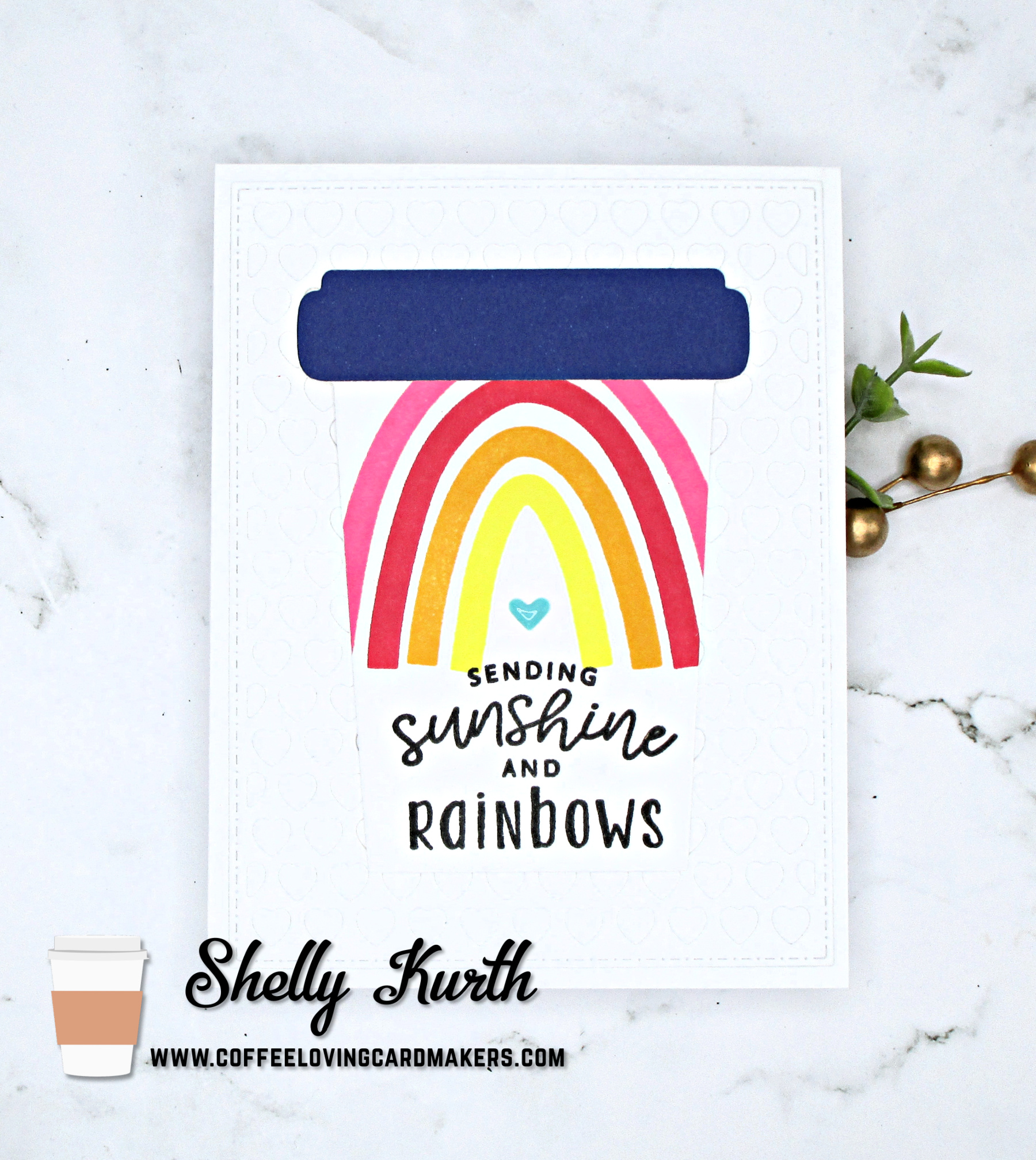 I started with making the coffee cup, I used white cardstock along with the coffee cup die from Waffle Flower Crafts. After, I stamped on a rainbow using the Brighter Days Concord & 9th stamp set. To finish things off, I used the heart cover plate from AJVD and a little enamel heart. Fun, right?!…