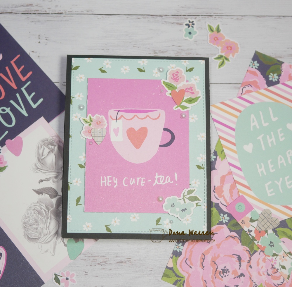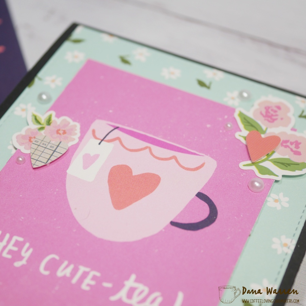 Today’s card features stickers and a great place to get them are with pattern paper collection packs! My card features Simple Stories – Happy Hearts collection pack! I had already used the coffee sticker but there was this super cute tea journal card that I decided to make the main focus of my card.