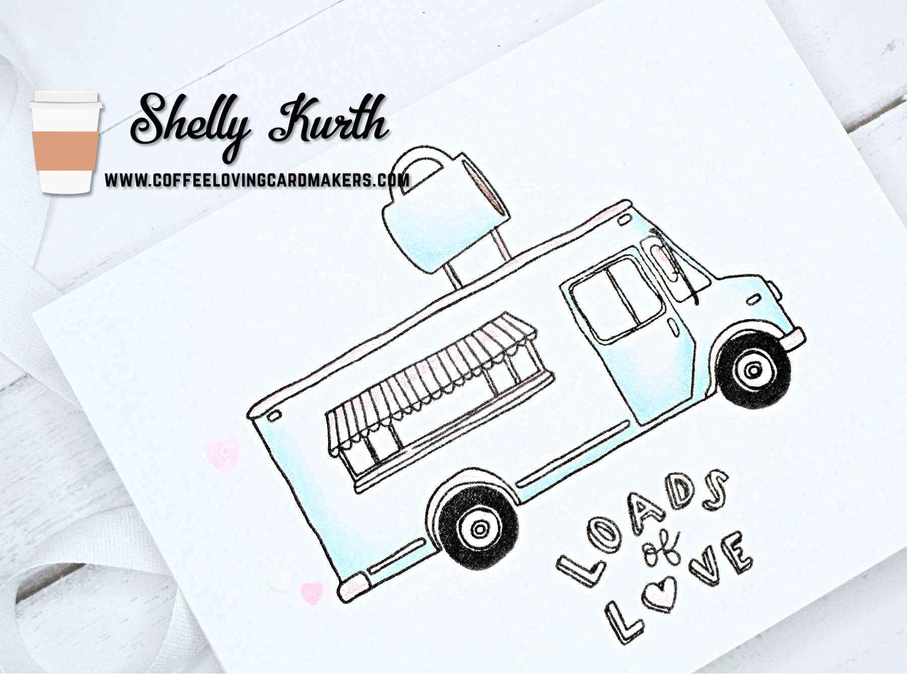 Who wouldn’t love a coffee truck?…I mixed and matched some Concord & 9th sets (oldies but goodies) and just had some fun with things. I did some super easy coloring with colored pencils, just to give things a ‘hint’ of color. Then added a few little gem hearts, which one is a tiny white one but is hard to see. (Maybe if you look closely above the tiny pink one you can see it a little?…) That’s pretty much it. Easy peasy, right?!…