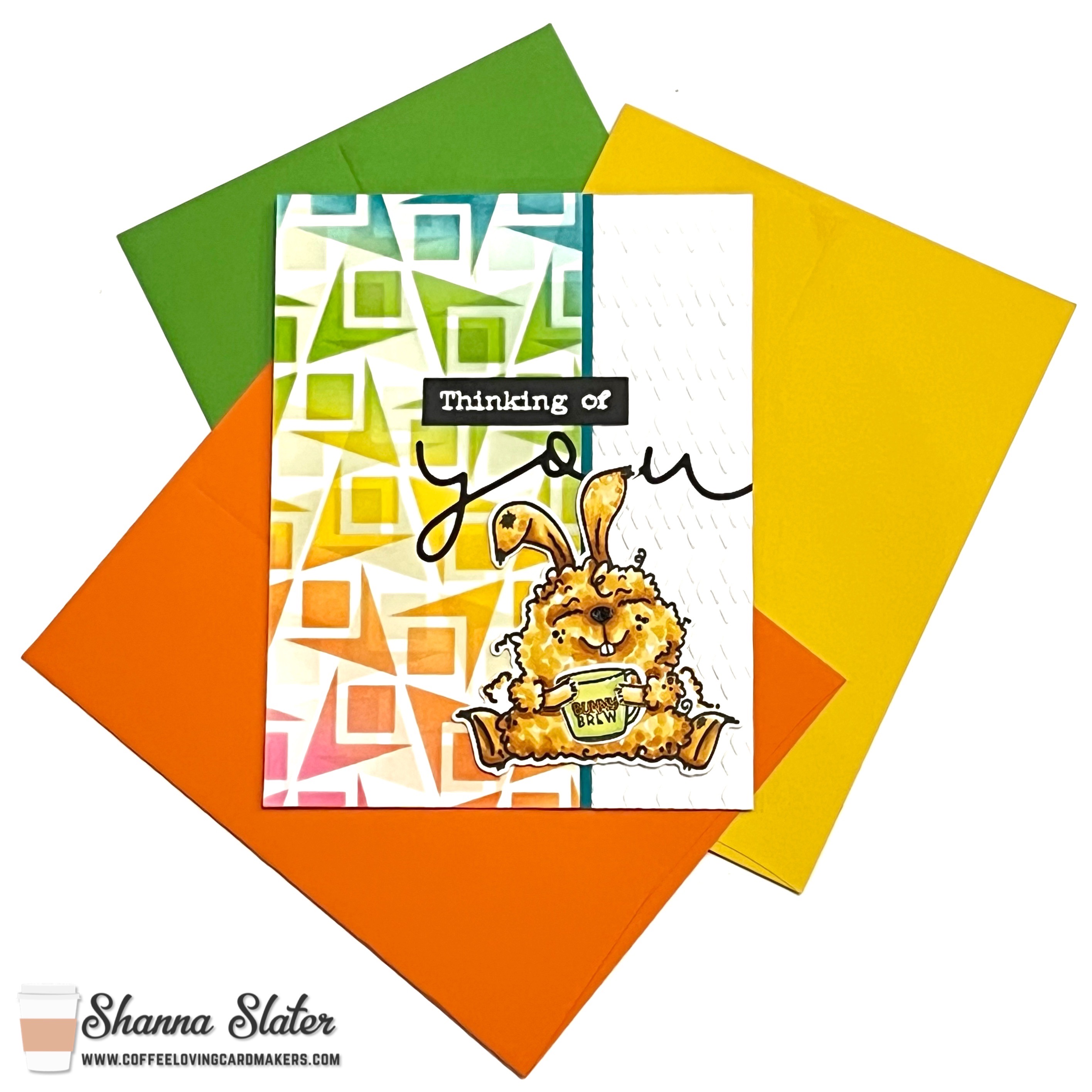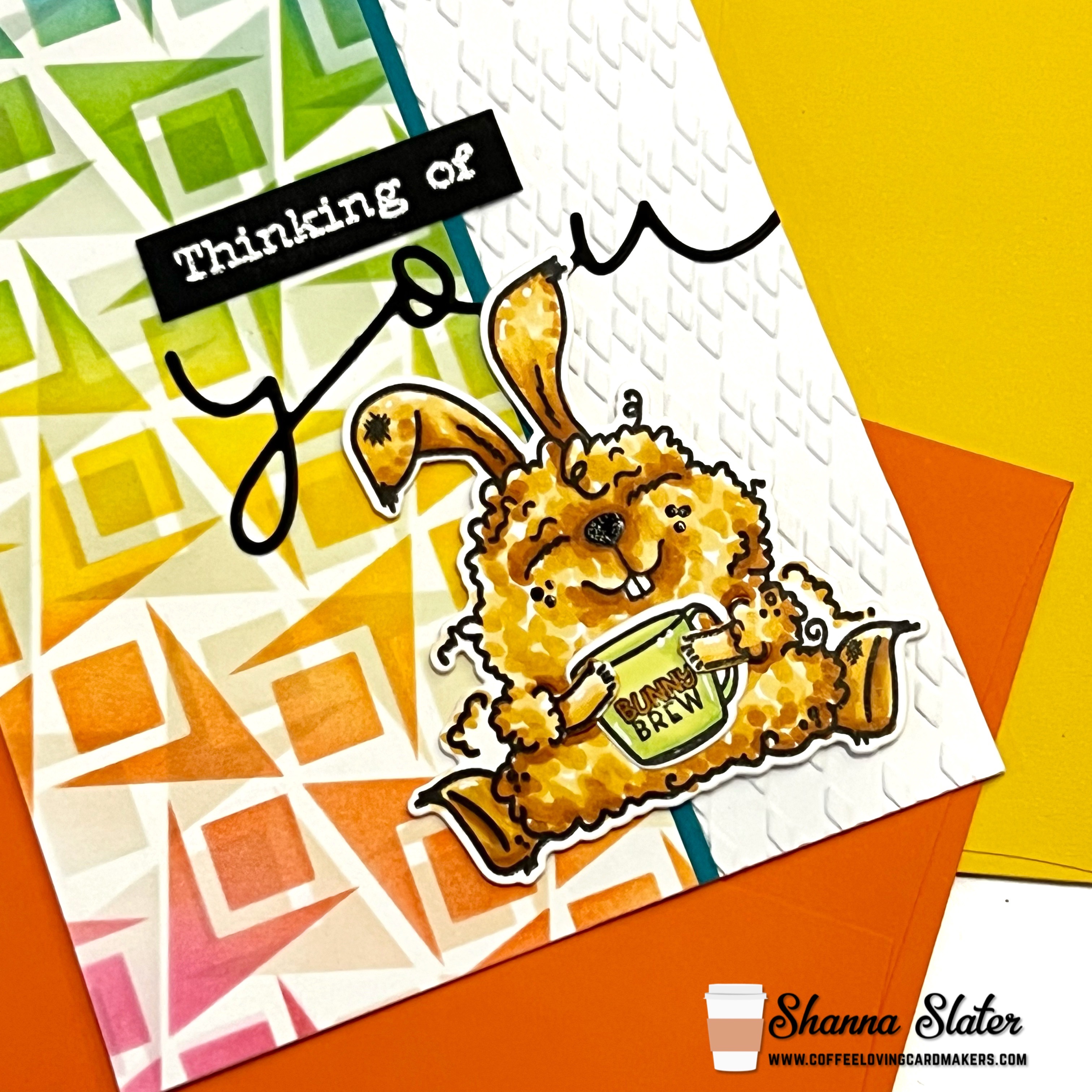 Hello and Welcome to another Mugshot Monday! This is Shanna from Caffeinated Craftiness and I am here with a fun NOT Easter, Easter Bunny card! LOL