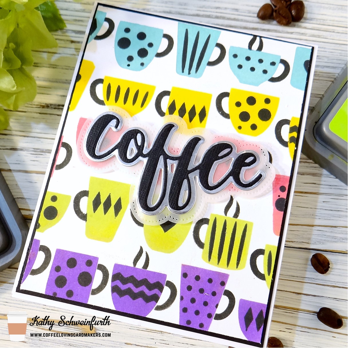 A simple card for someone who simply loves coffee! A great all-occasion card that a special note or sentiment can be added to the inside. Coffee. Easy. Colorful. My kind of card!