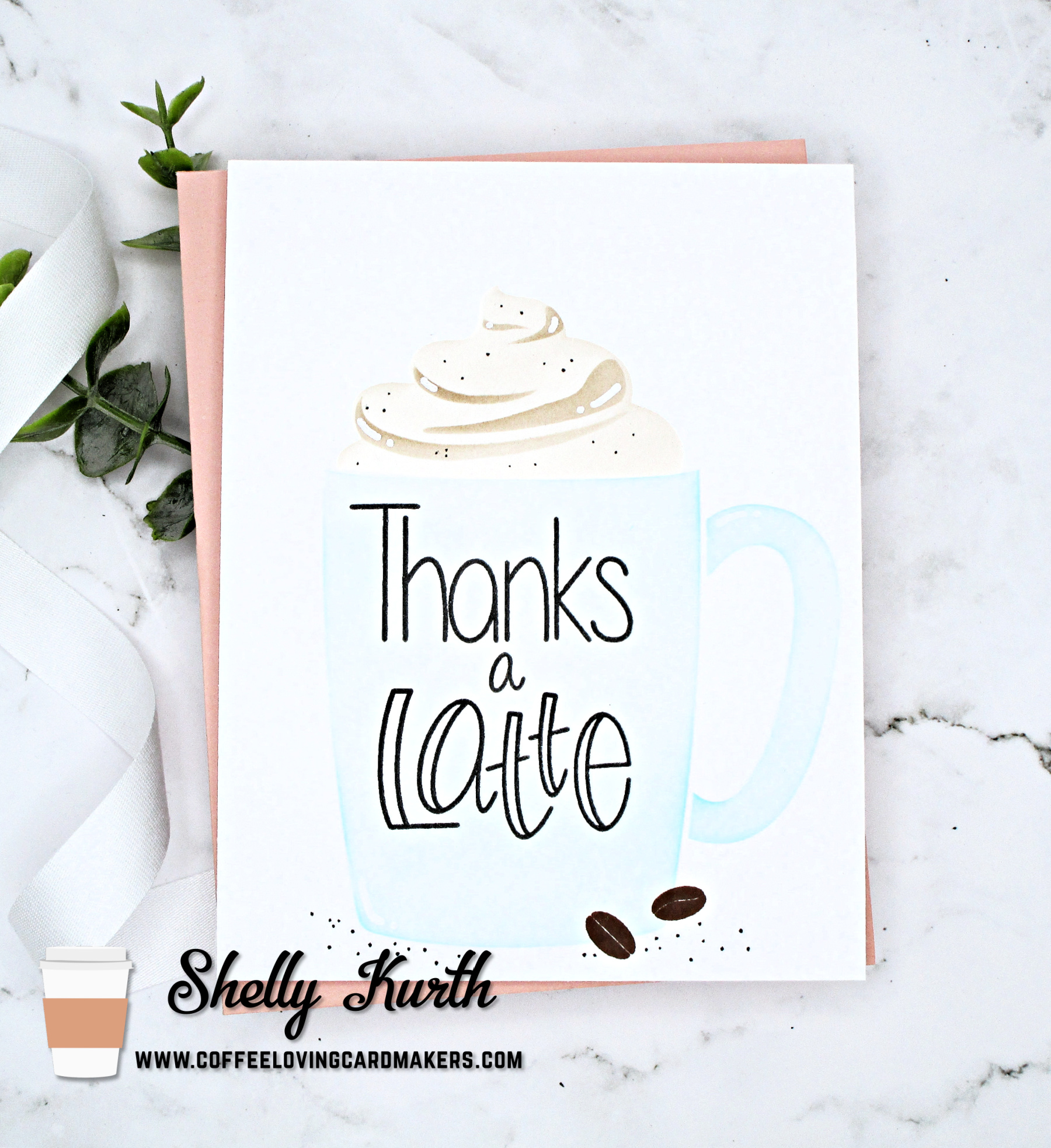 Sweet, right?!…I used Trinity Stamps new Layered Mug stencil and lightly stenciled on things. After, I added a couple coffee beans, added a few ‘coffee grounds/sprinkles’ and some highlights with a white paint pen. Once done, I finished things off with a fun sentiment using Trinity Stamps A Latte Love stamp set. That’s it! Simple, right?!…