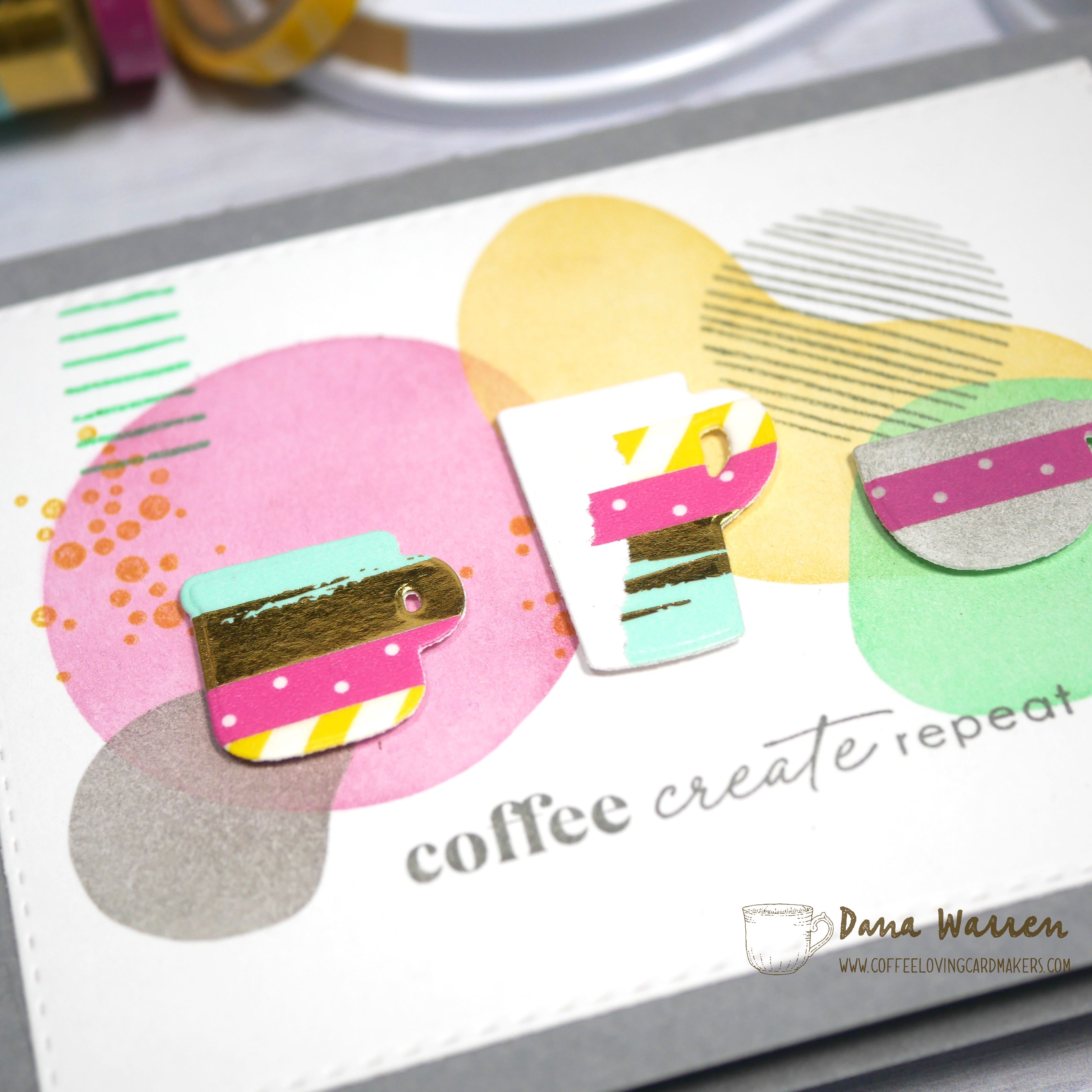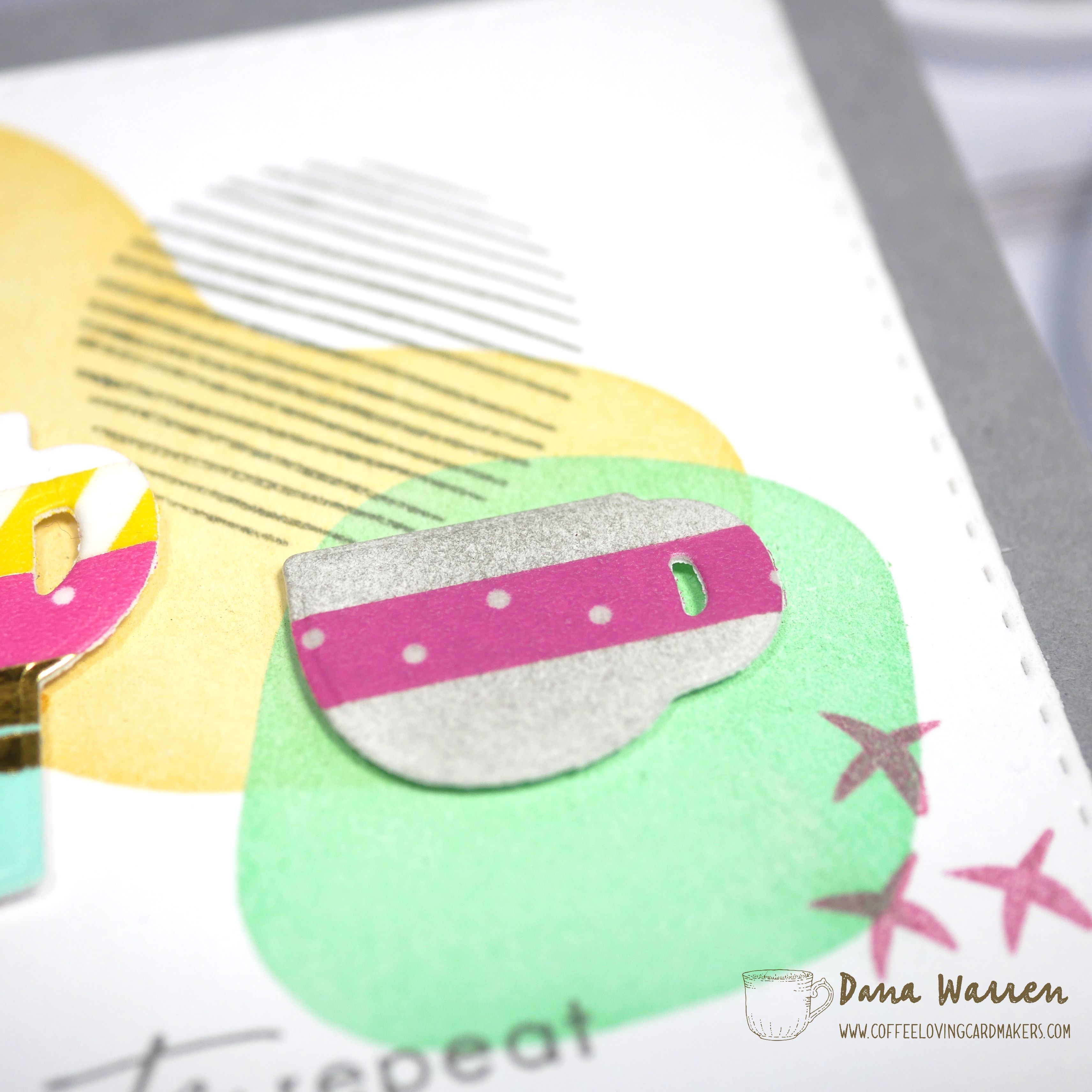 So instead, I pulled out Taylored Expressions Perk Up Card Kit, it has small coffee dies. I added the washi tape to white card stock and used the dies. I thought I would only use one of the cups, but one cup got the edge of the washi tape and I liked the look of it.