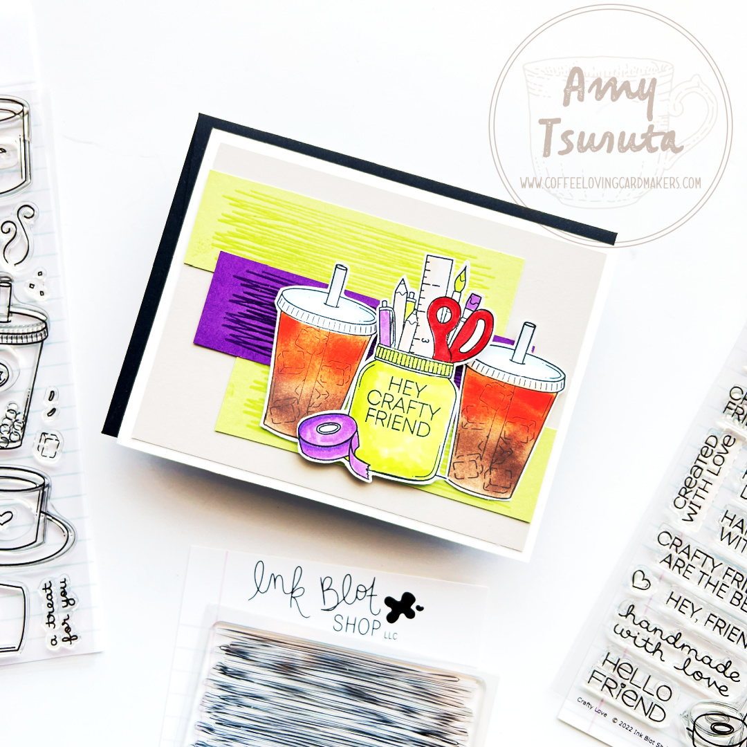 The Thai Iced Teas have been colored in with Distress Oxides. I made a ‘mask’ with a sticky note and Ink blended: