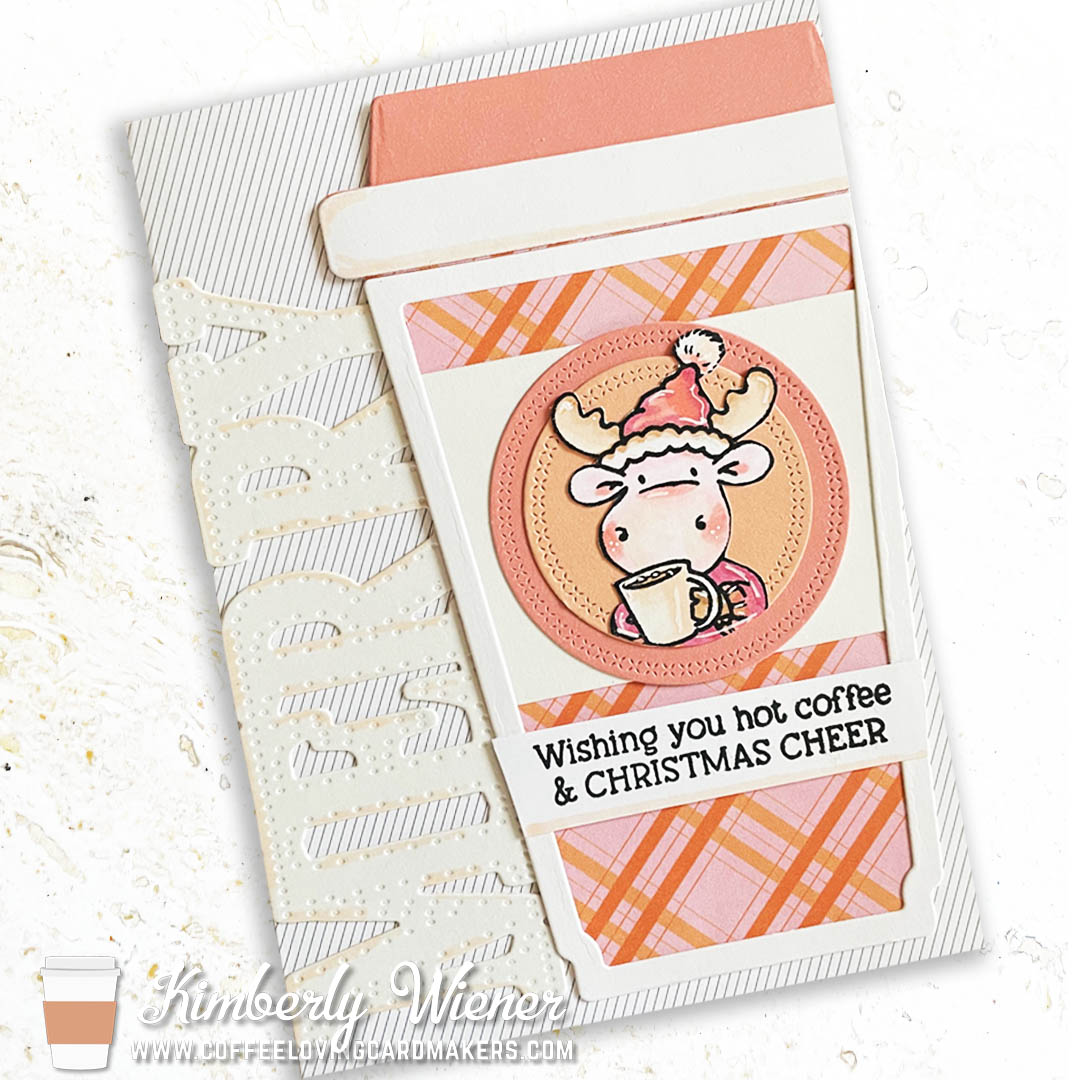 Hello caffeinated card makers! Today I’m sharing my sweet Riley’s caffeinated card with you. I found this sweet pink and orange plaid paper in my stash and that started the entire direction of this design. Non traditional colors can be so fun too. Tell me —- how cute is Riley the Moose!