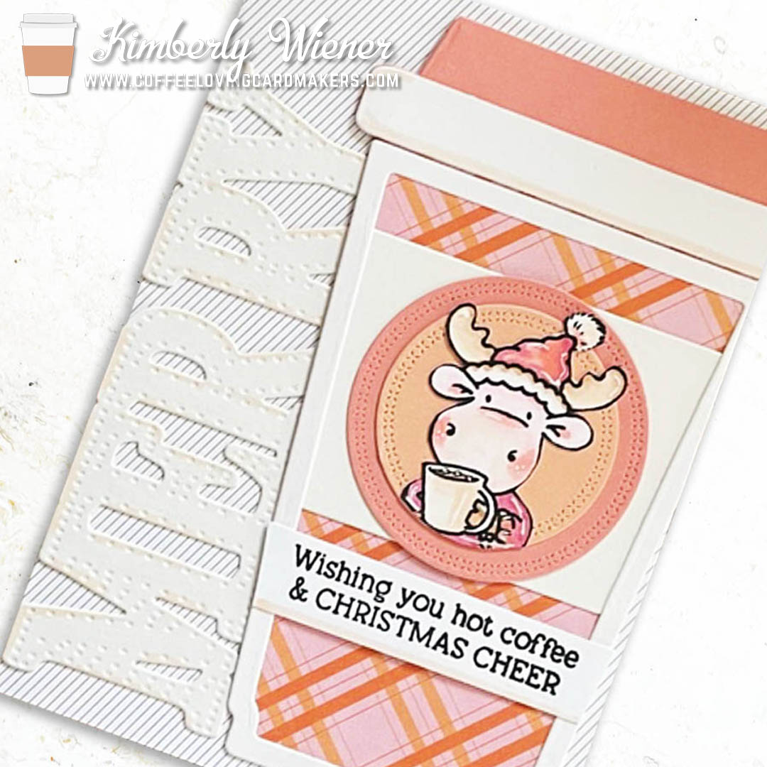 Hello caffeinated card makers! Today I’m sharing my sweet Riley’s caffeinated card with you. I found this sweet pink and orange plaid paper in my stash and that started the entire direction of this design. Non traditional colors can be so fun too. Tell me —- how cute is Riley the Moose!