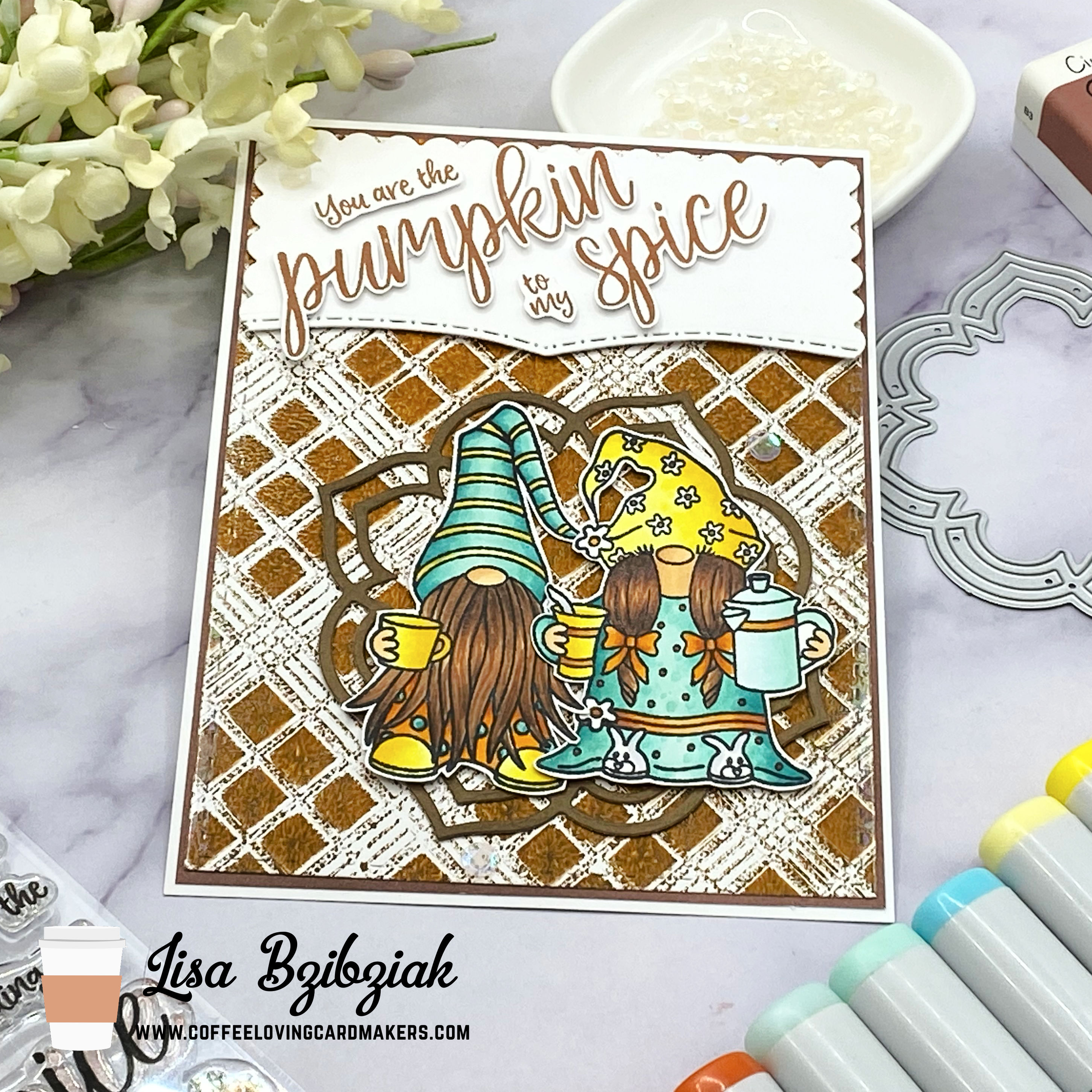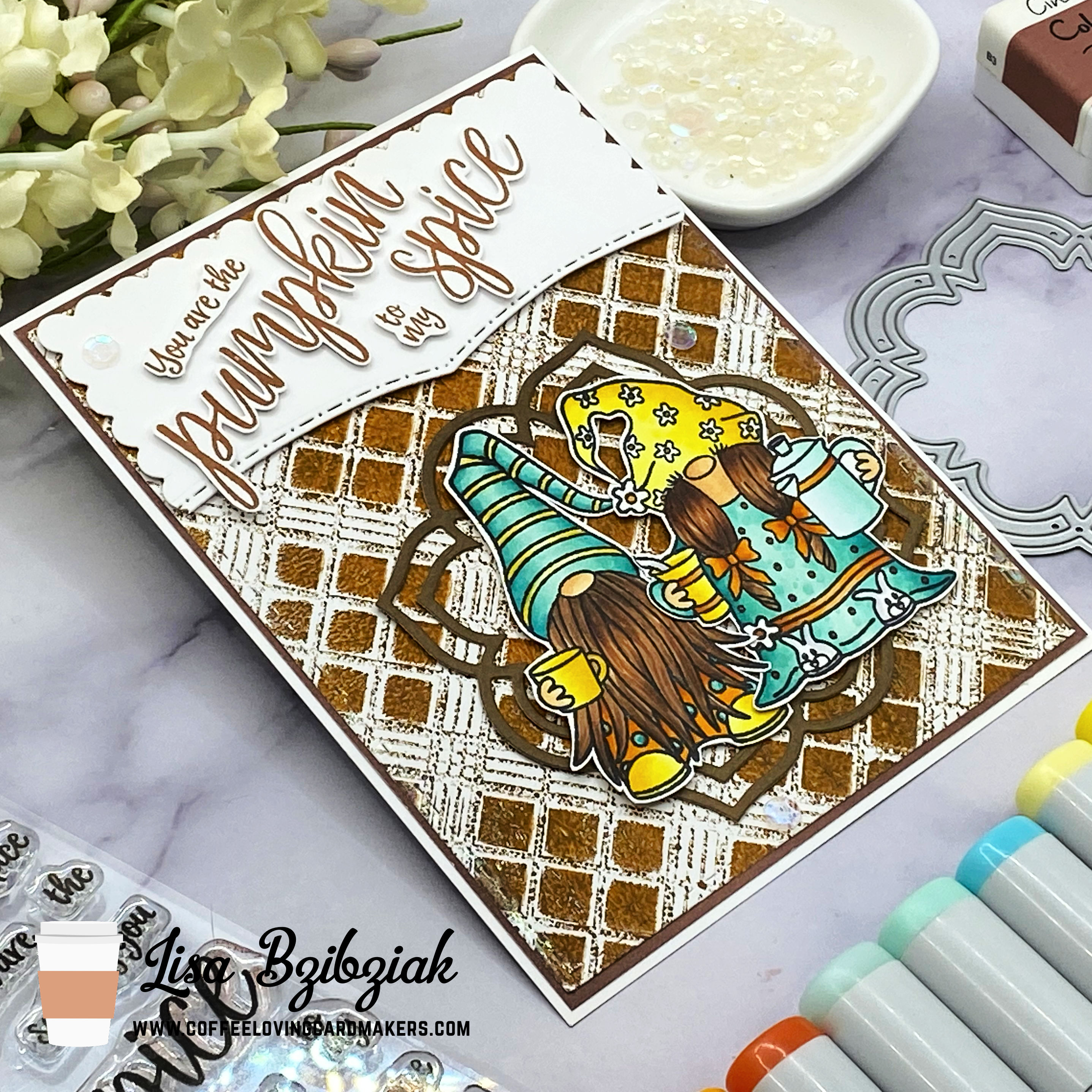 Did you know that Miss Ink Stamps is sponsoring this month’s Caffeinated Christmas Card Challenge?! Head on over there for more Gnome and some Christmas Card inspiration!