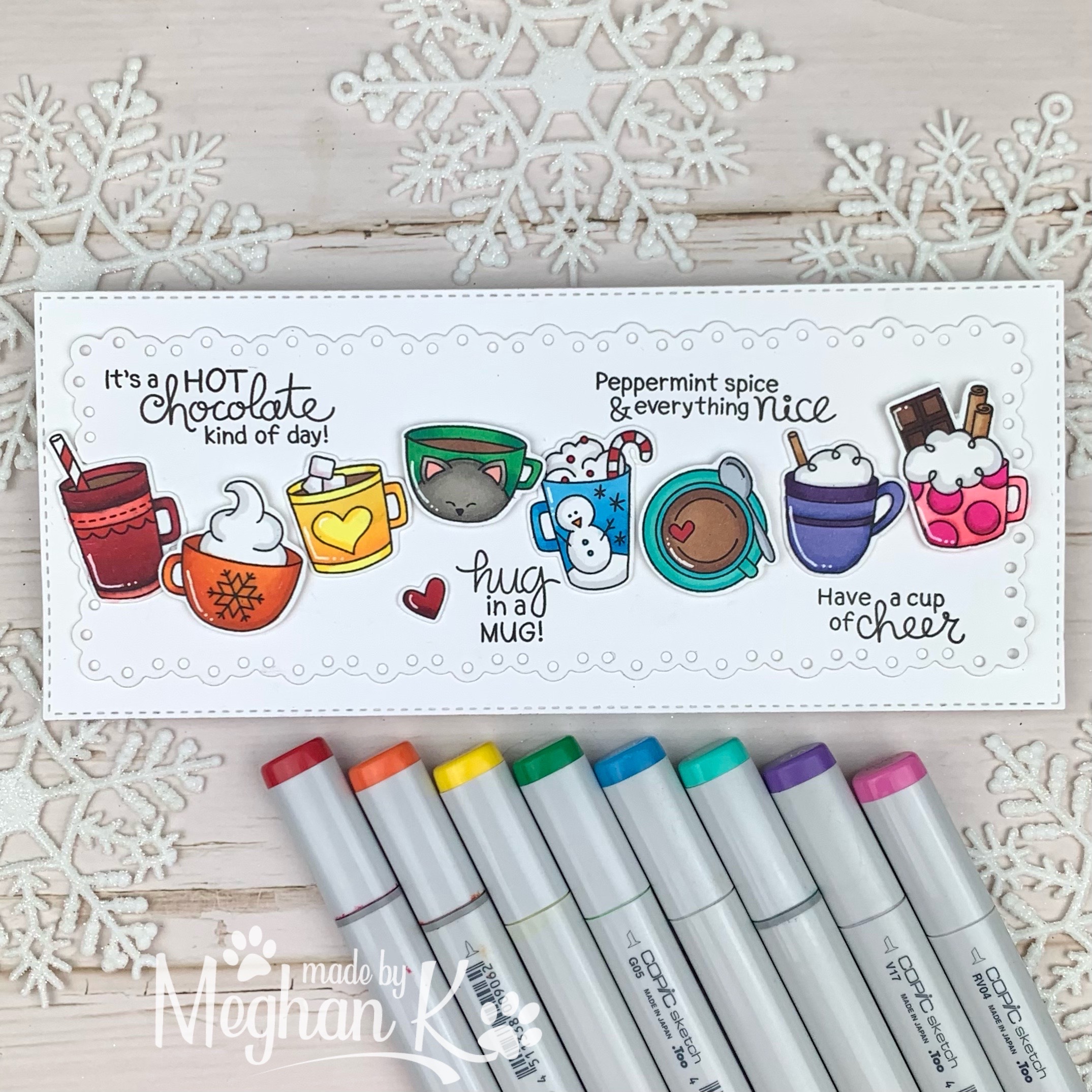 Suzanne’s card is so festive! I love all the pretty layers and cute plaid mug filled with yummy cocoa!