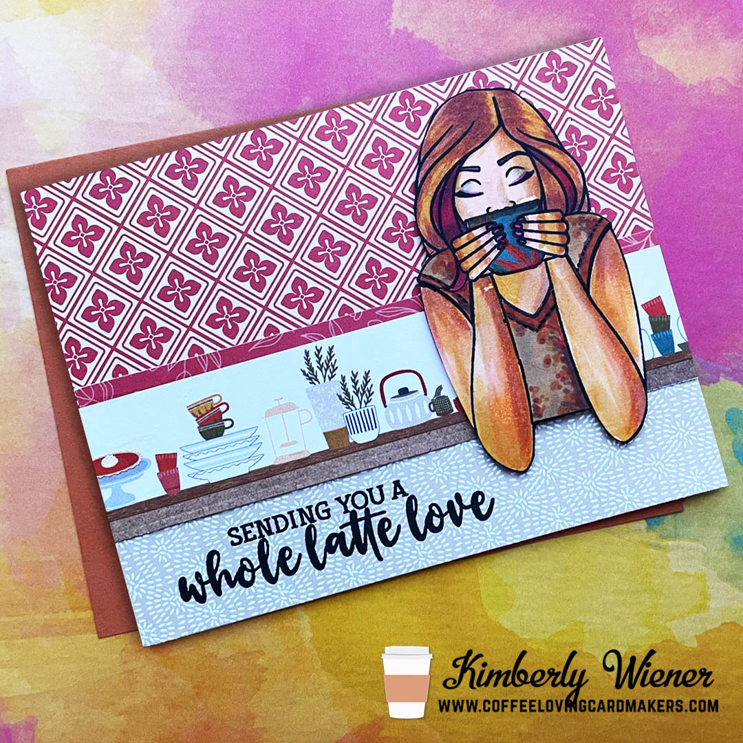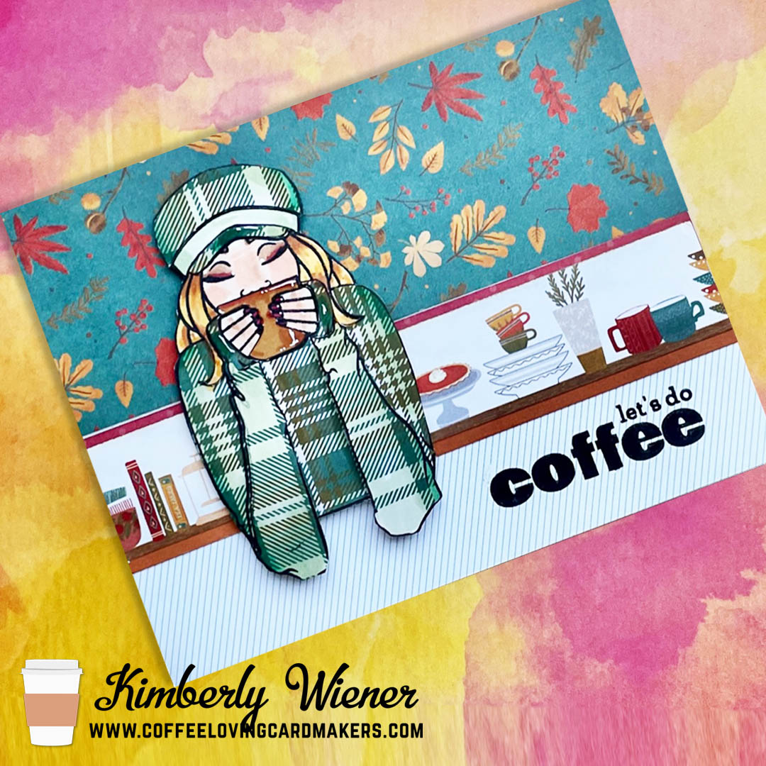 I fell head over heals for this Thankful Photoplay Paper 6×6 pad. All of the paper designs are perfect for fall creations. One of the paper designs are strips of pies, plates, plants, and mugs all in fall colors, perfect to make several caffeine inspired cards.