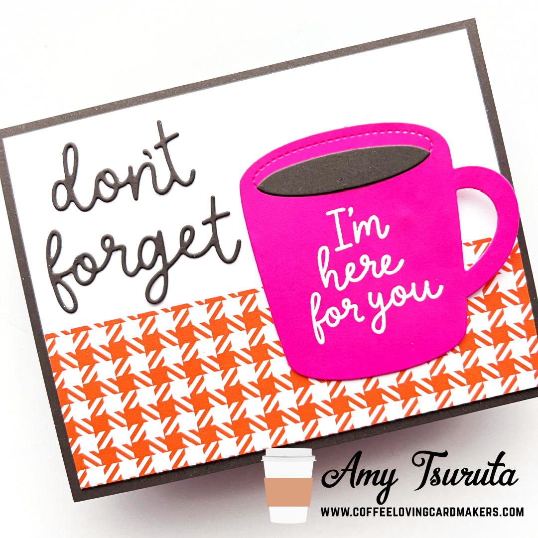 The coffee, the card base and the don’t forget sentiment are in the retired Reverse Confetti – Dark Roast cardstock.