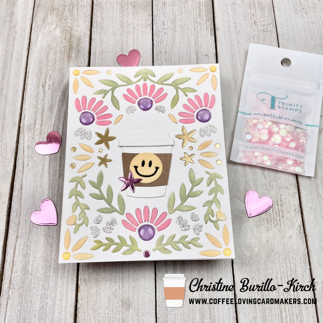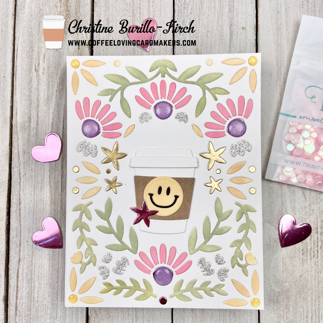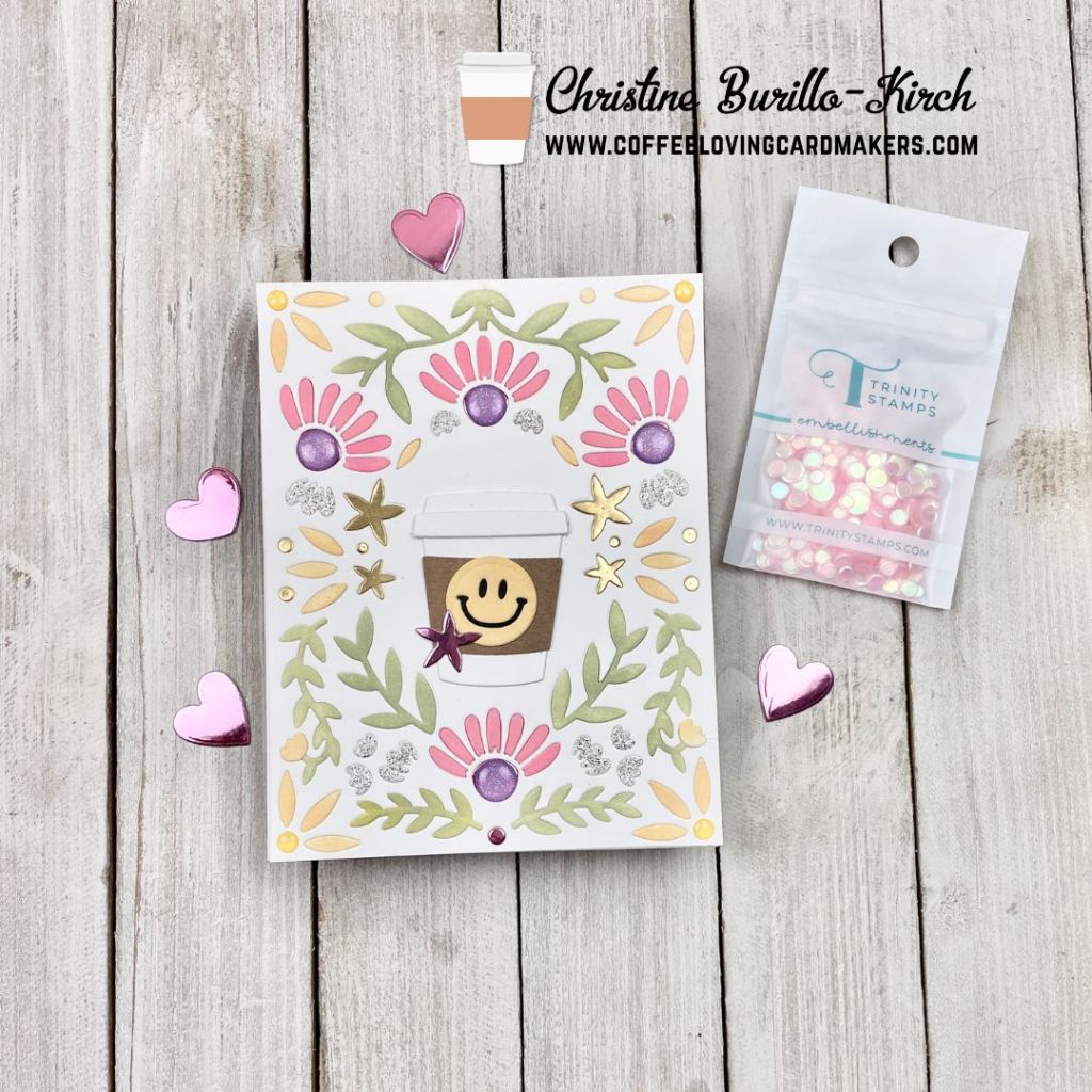 Hi there, Christine here with a springtime coffee card, even though we are in the thick of winter. Hopefully this card will brighten your day if your area is stormy or has a lot of snow! I used a lot of new Concord & 9th products that have recently come out.