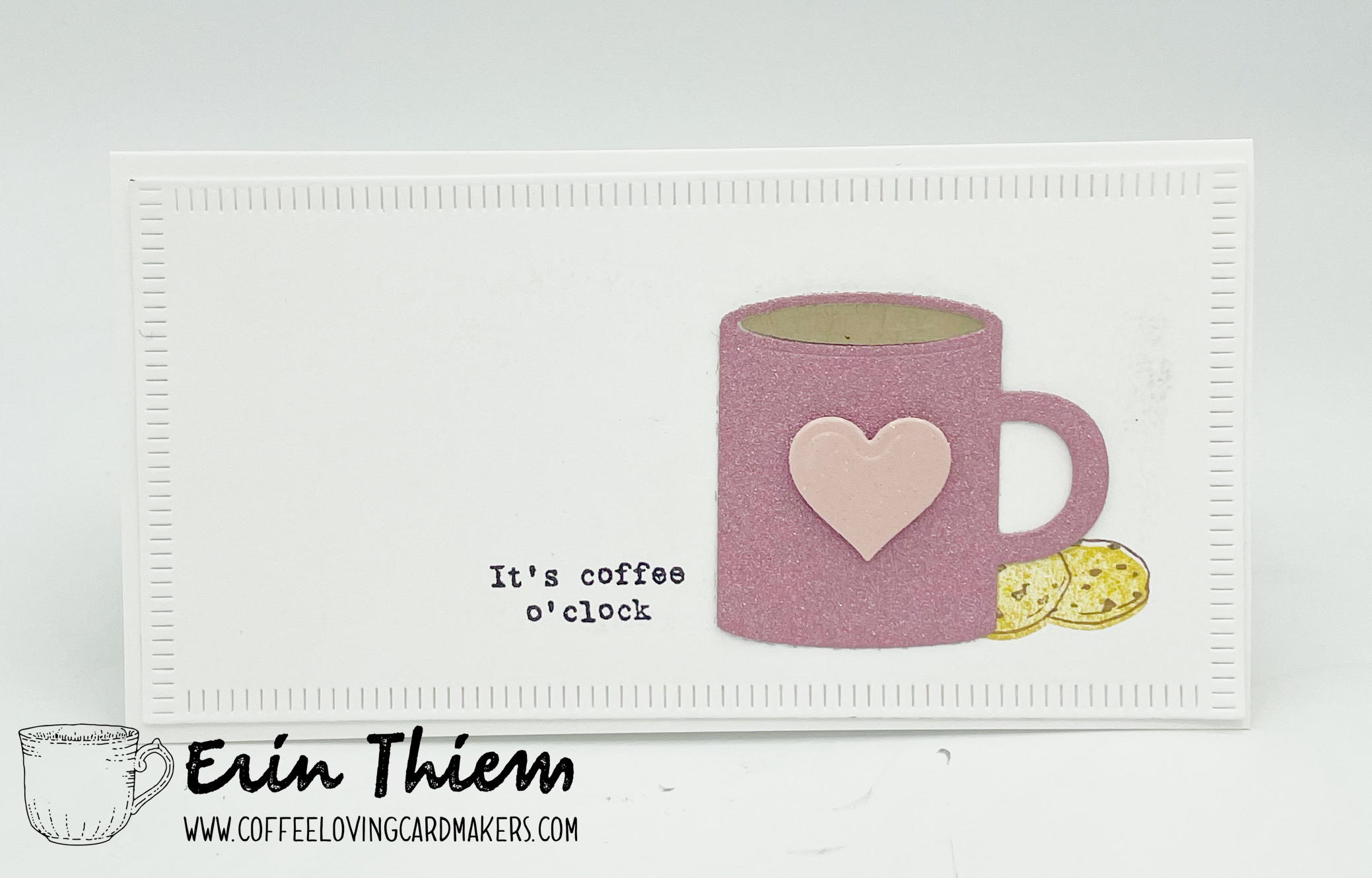 Hello, Erin here for another Creative Chaos. It’s coffee o’clock… I love a white on white card, so this mini slimline card features a MFT sparkly mug, Altenew cookies and die by Pink Fresh. Time for a coffee break 🙂 Hope this weekend gives you all some crafty time, cheers.