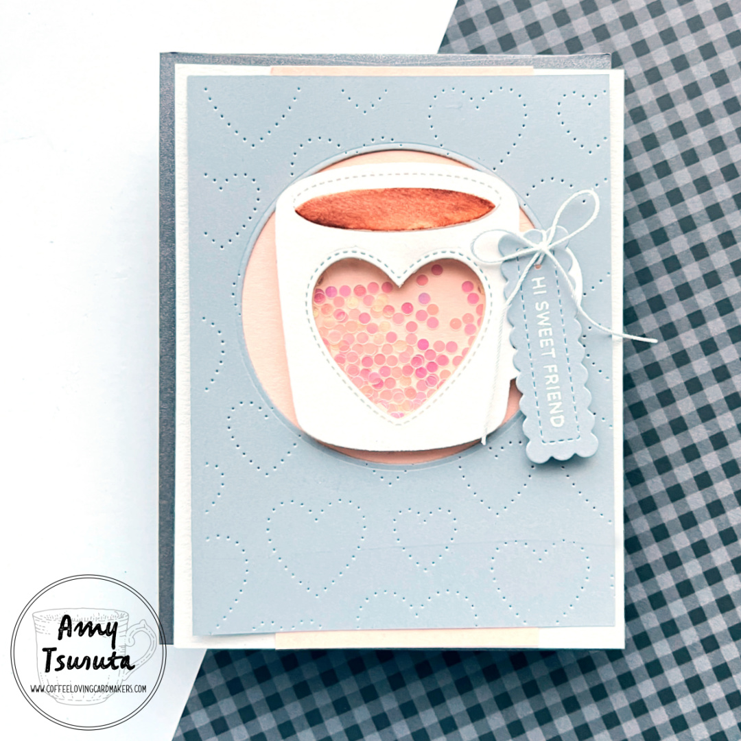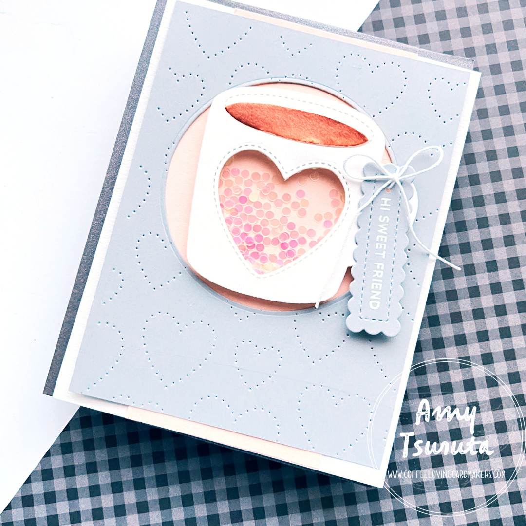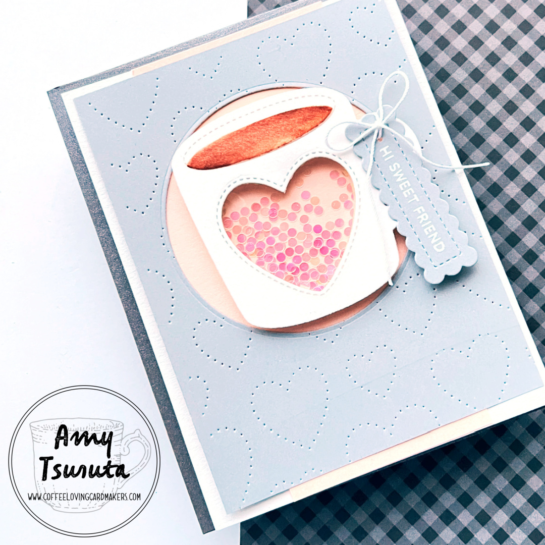 The sentiment has been heat embossed in white. The mug has been cut from watercolor paper and the coffee was colored with Zig Clean Color Real Brush Markers.