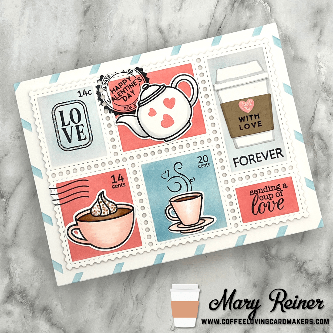 Happy February! For my first post this month, I wanted to go with a Valentine theme. I had so much fun creating these cards! I “shopped my stash” to find all of the little, caffeinated elements.