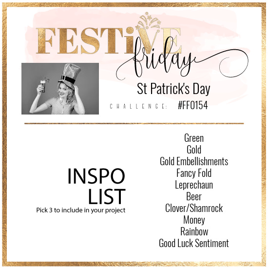 Double Trouble Challenge Blog’s current challenge is Green! Add gold for the twist and with the Luck sentiment that makes three elements for their partner this time, Festive Fridays! You should check it out… you have until the 17th!