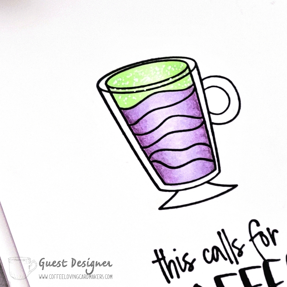My colored image was inspired by the Starbucks Lavender Frappuccino with Matcha Cold Foam. I only used 3 Copic markers to color up my stamped images; YG11, BV000 and V15. I also used my white gel pen to add lots of tiny dots for the “cold foam”. I’m way overdue for a coffee date with my bestie, so I have her in mind for this card. If you’d like the full supply list, hop on over to my blog. Have a great day!