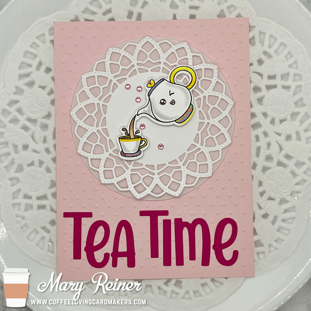 Happy Monday! I am excited to share another card I created using the adorable It’s Par-Tea Time stamp set from Pixie Dust Designs.