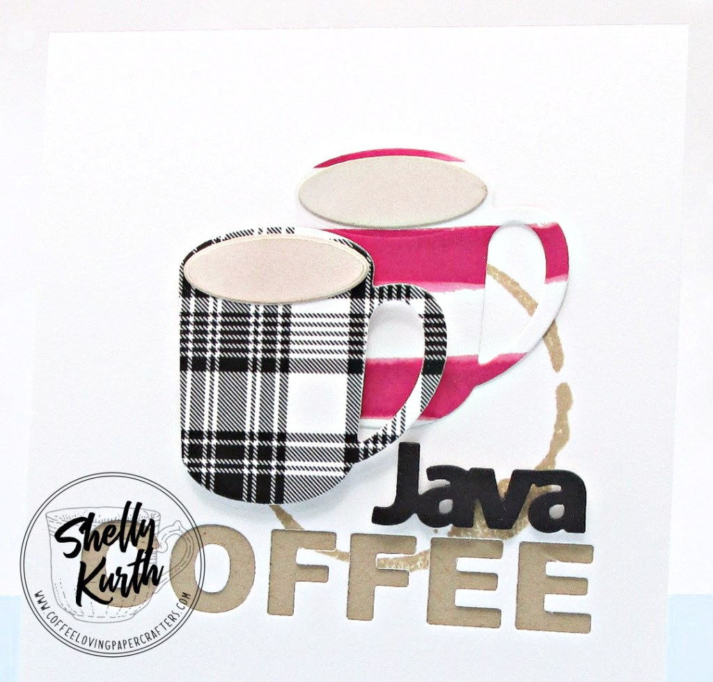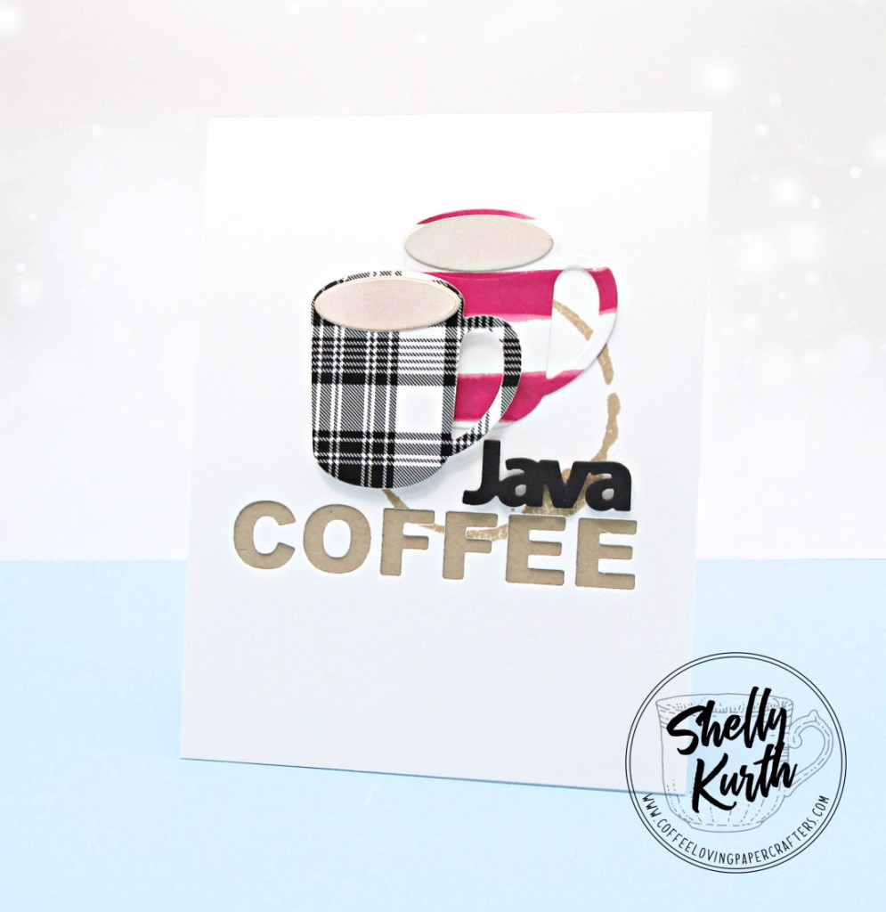 Java Coffee?!…I wanted to do a play on words, so instead of ‘have a coffee’, why not Java Coffee?!…As usual, I went with clean and simple. I used some patterned paper for the cups and then did a light ink blending for the coffee/java. After, I used a piece of white cardstock with the ‘coffee’ word die and then stamped on a ‘coffee stain’ in brown ink. Once done, I added a piece of Kraft cardstock under the ‘coffee’ die cut panel, before adding it to my card base. To finish things off, I added a ‘Java’ die cut sentiment above the coffee sentiment and then added on the cups. Simple, right?!…