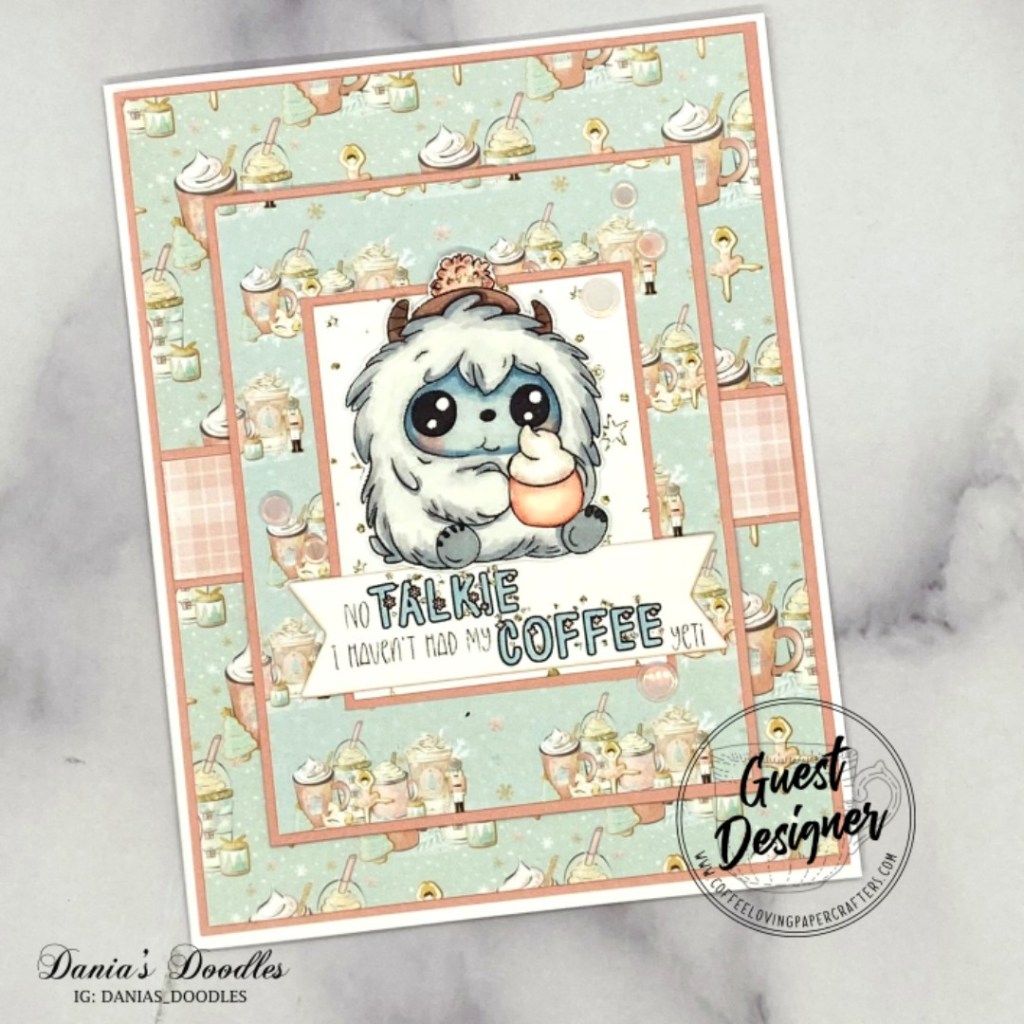 Here is Dania’s super adorable card using newly released items from Copictopia Creative: Yeti for Winter stamp set and Nutcracker and Cocoa patterened paper.