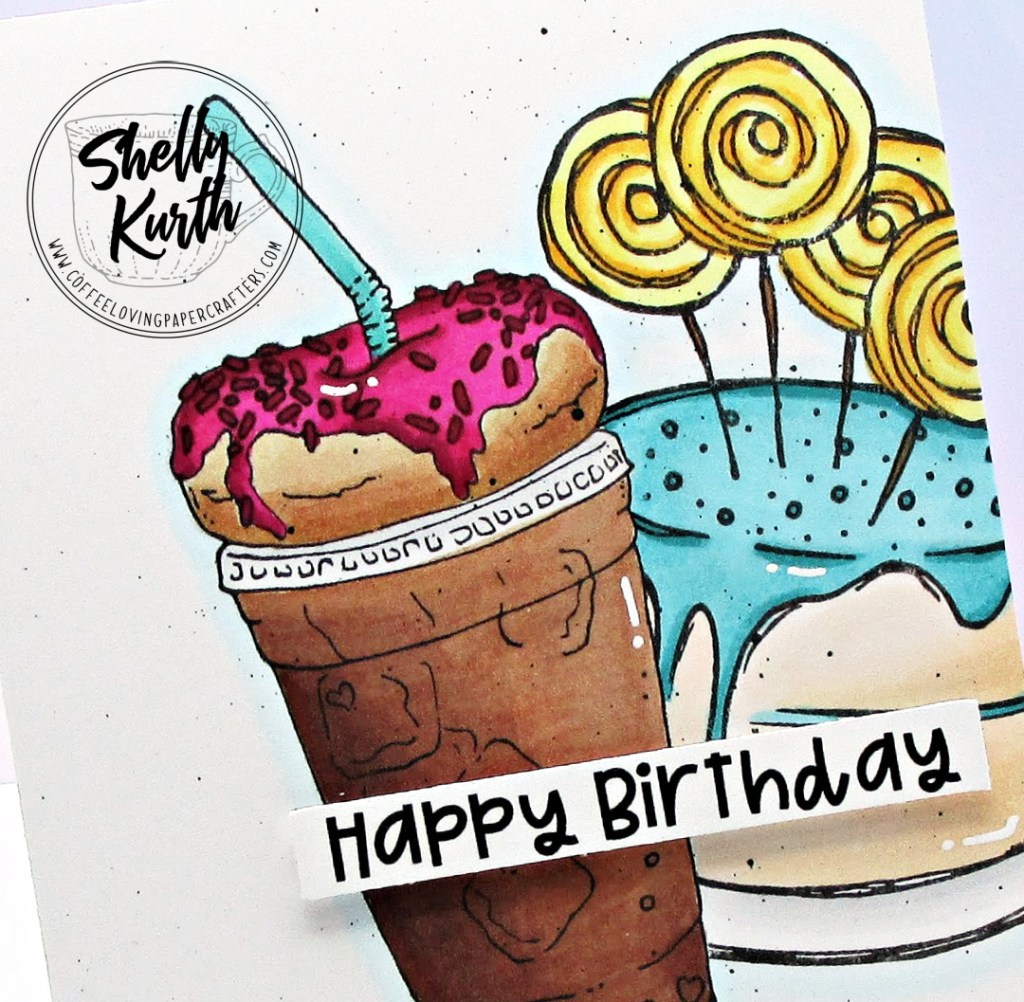I simply did some masking with the images and then used Copic markers to color them in. After, I added a little touch of paint splatters and then a ‘happy birthday’ sentiment (which I did sneak in from Paper Smooches…don’t you just miss PS?…). So simple and easy, right?!…