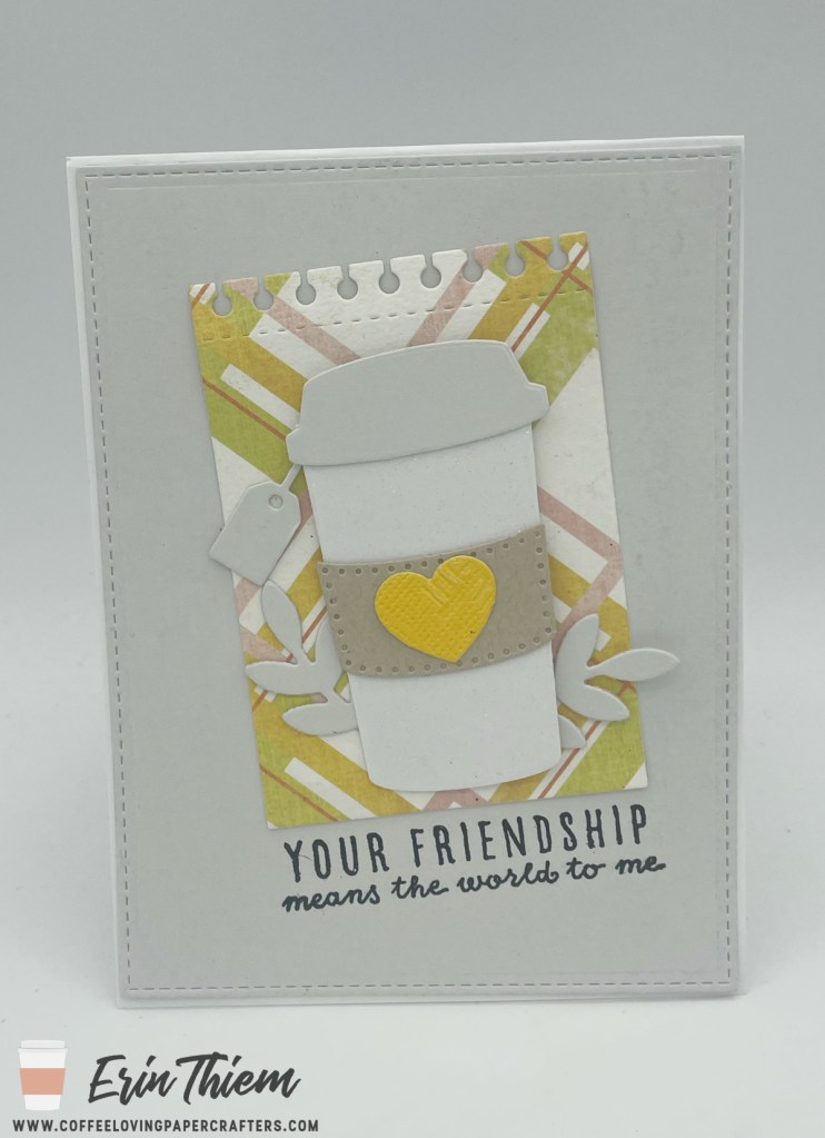 Hello, Erin here, with a Creative Chaos post to celebrate friendship and tea! I was inspired by the current Inspired By Challenge, using a Fun Stampers Journey die with a Reverse Confetti sentiment, Concord and 9th leaves and a die from Papertrey Ink. It’s hard to tell, but the mug has some fun sparkle to it– and it was nice to mix it up and add a tea bag to the card– I gifted it to my tea drinking friend.