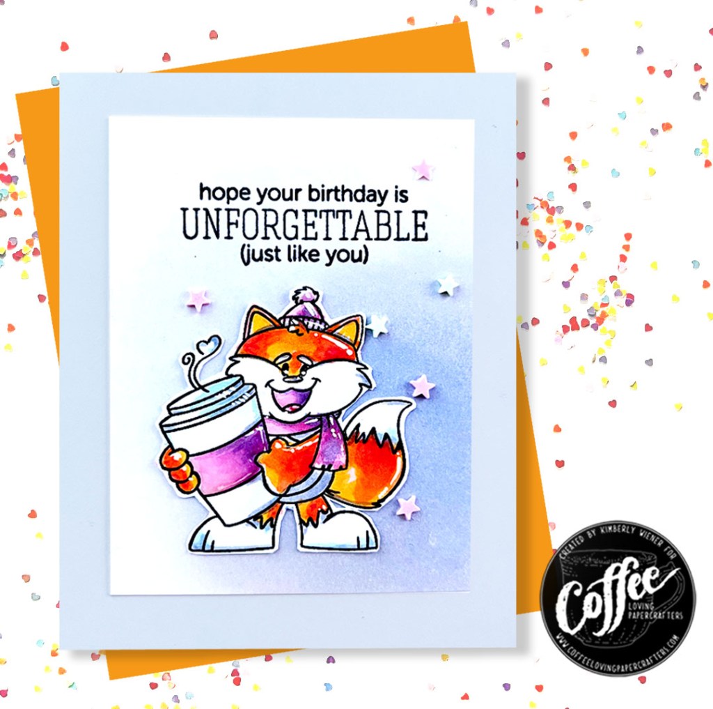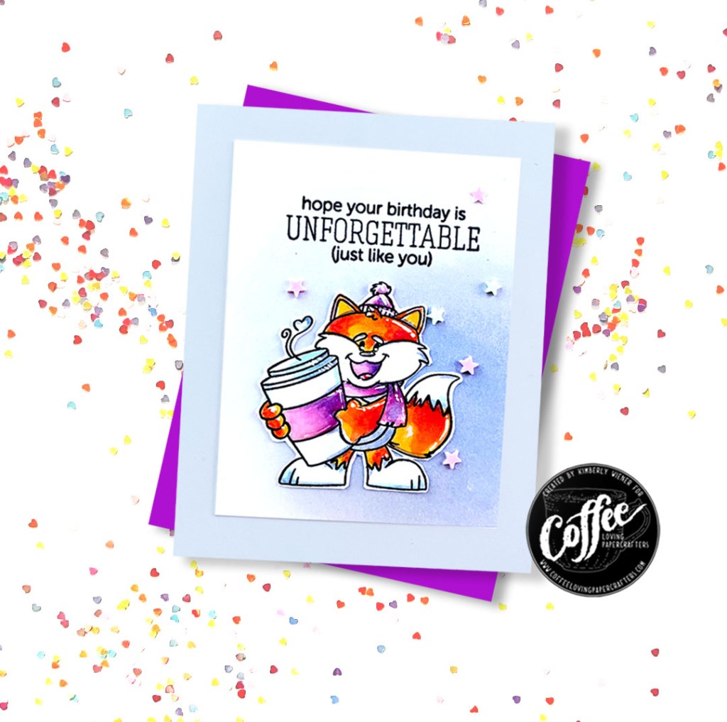 This smiling fox makes me chuckle. I think he’s so great with his offer of a latte. Whimsy Stamps has a ton of great coffee selections. I really have my eye on the “Cool Beans” stamp set.
