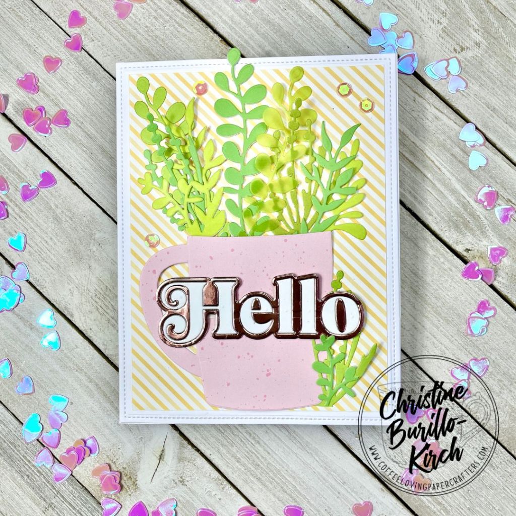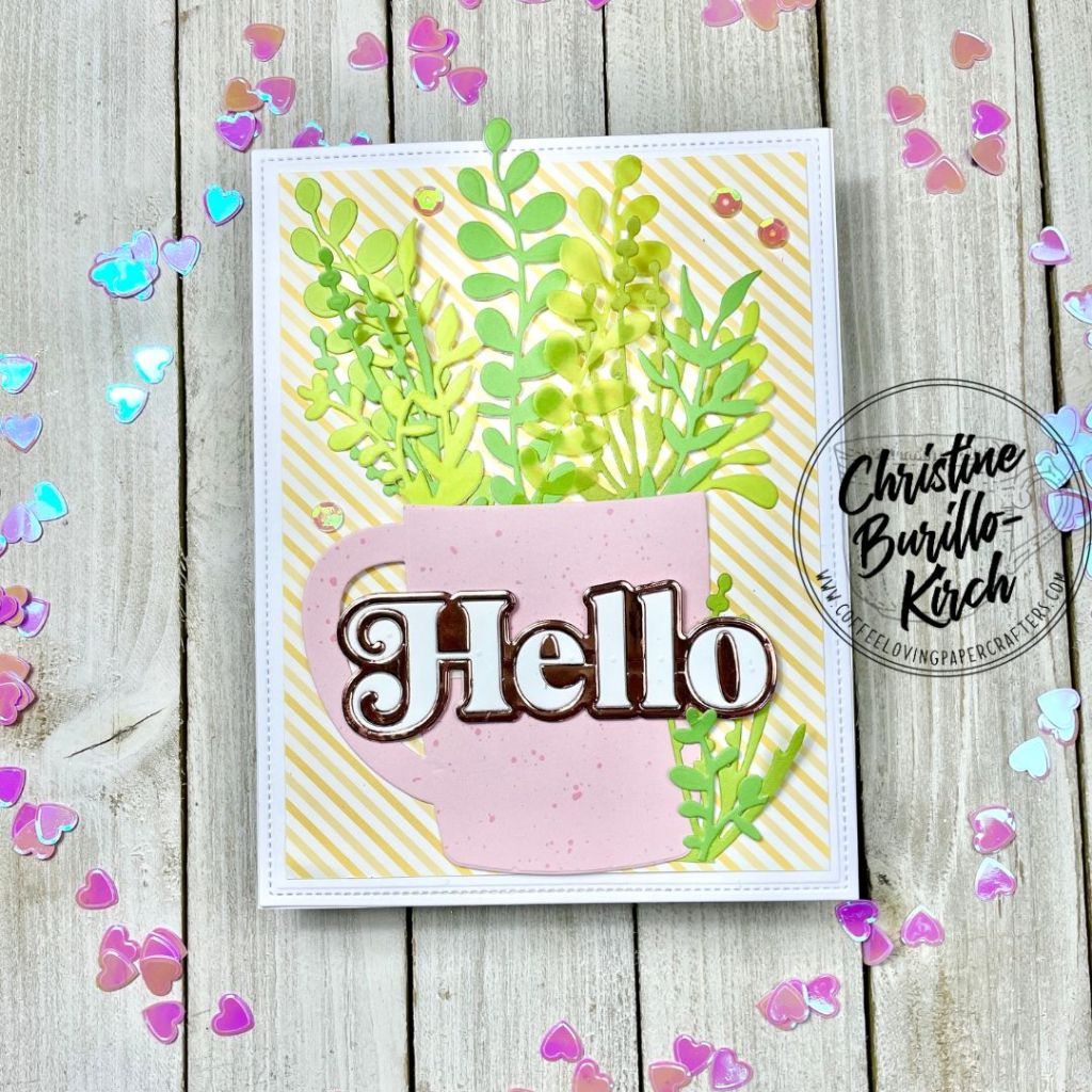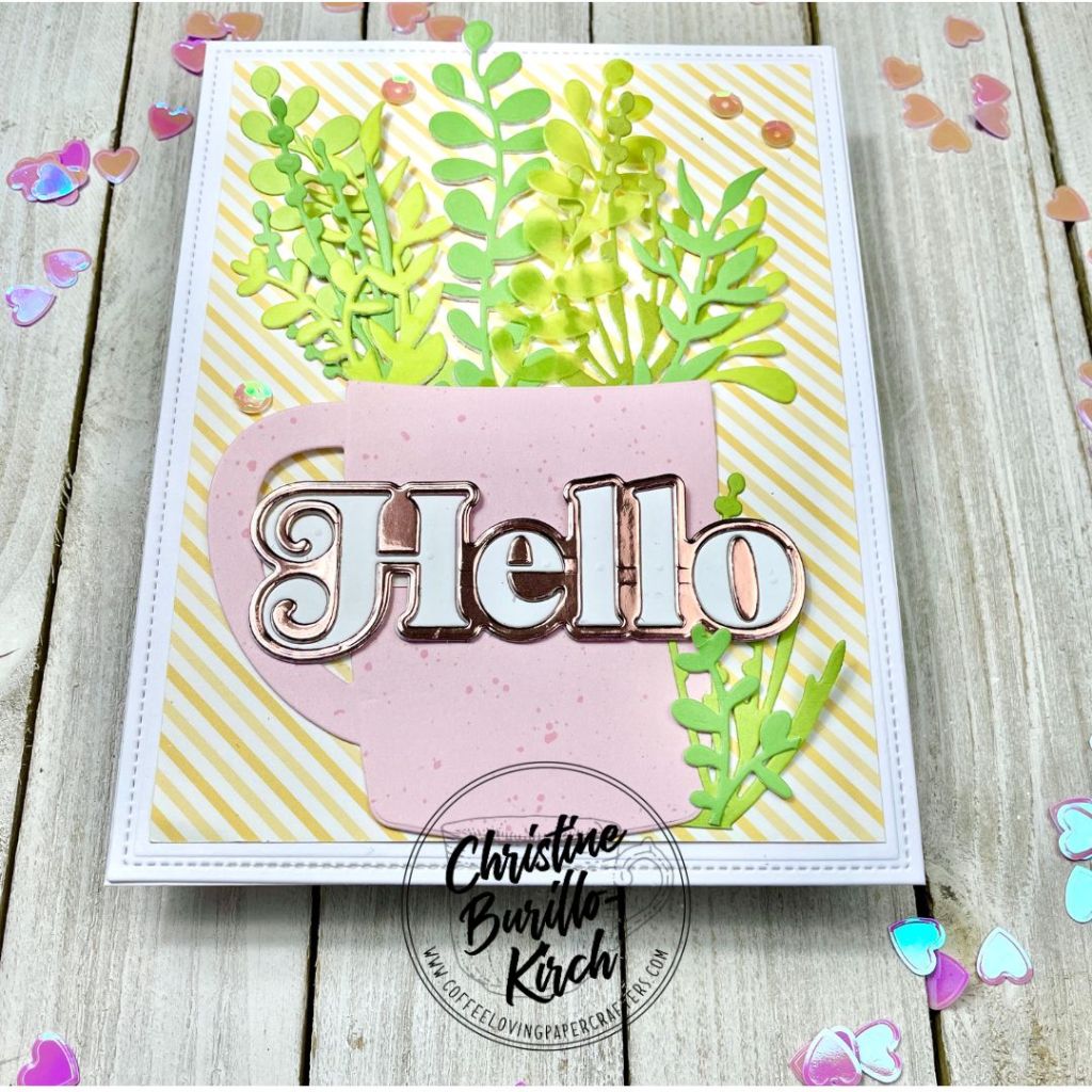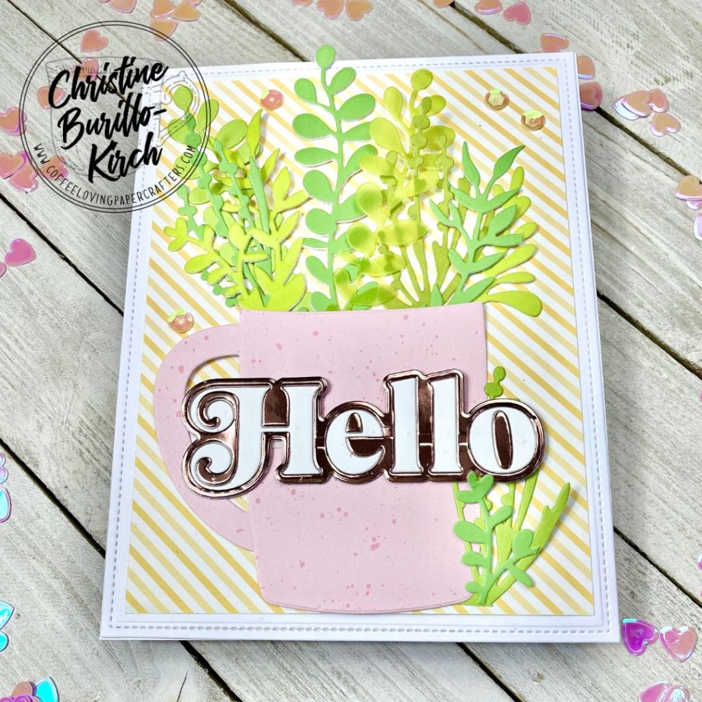 I did simple die cutting here and used the Trinity Stamps Beary Cute Layered Mug die set to die cut the mug combined with the The Greetery’s Garden Tub Filler die to create a card with a very spring-color palette.