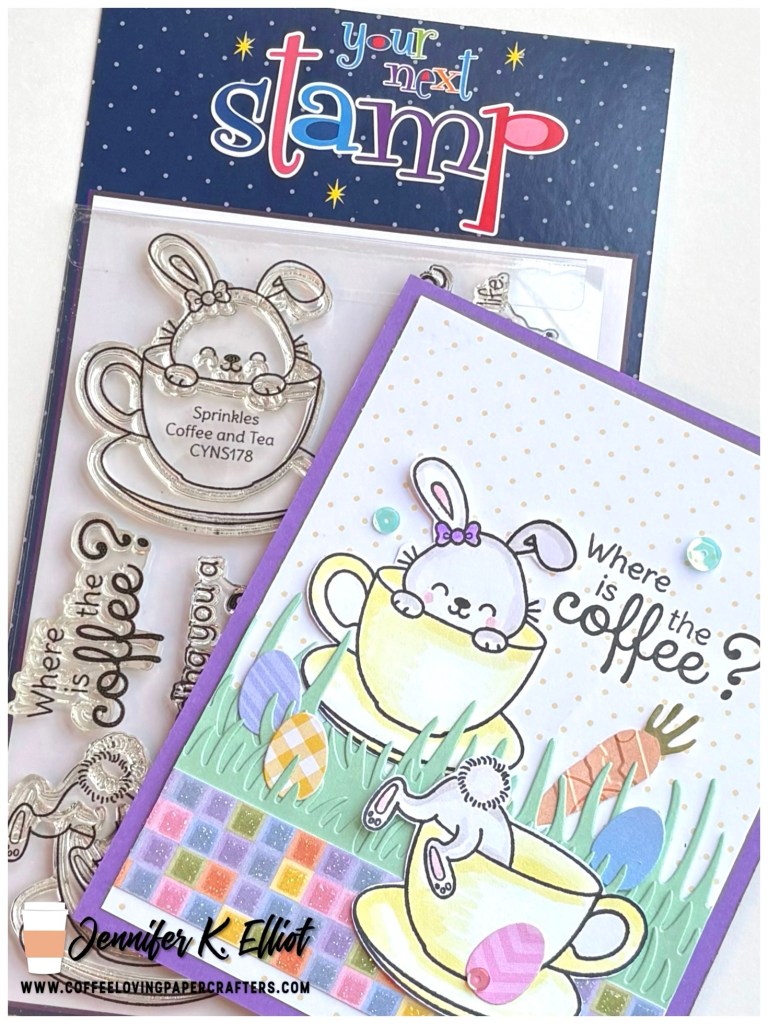Your Next Stamp Sprinkles Coffee & Tea stamp set was a welcome “new to me” addition to my stash. While it may be a retired sponsor brand now, I have been anxiously waiting until April to use it.