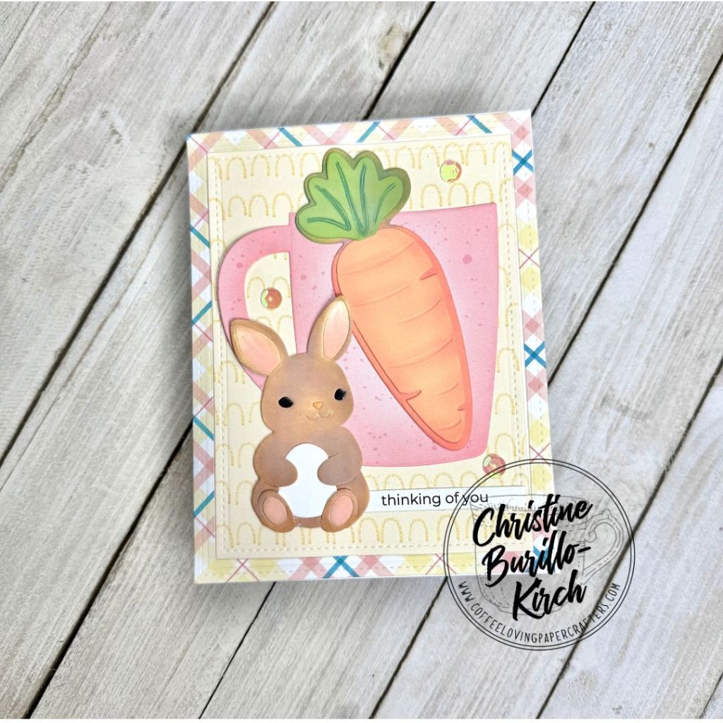 Hello there, Christine here with a carrot coffee card- because a bunny needs caffeine too? Wishing anyone that celebrates a wonderful Easter. Today’s card uses products Super Sponsors Trinity Stamps and Simon Says Stamp.