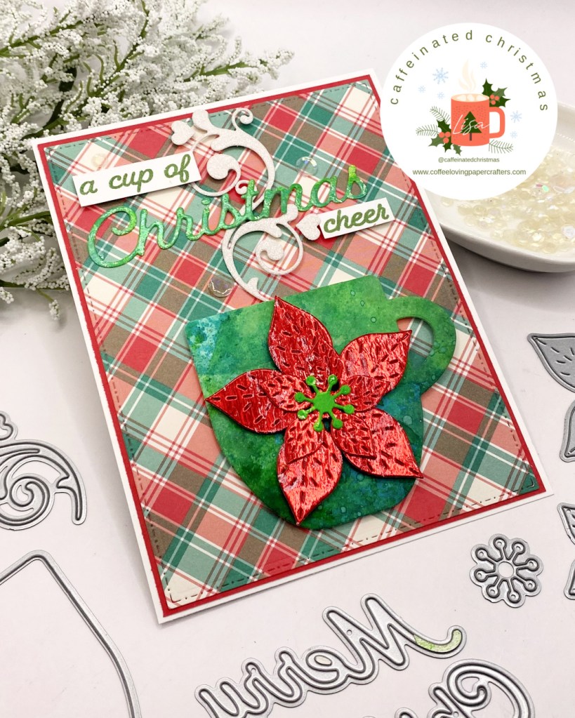 Welcome back! Today I’m sharing a card I made for the Caffeinated Christmas Card Challenge with some dies from A Jillian Vance Design! The theme this month is Flowers!