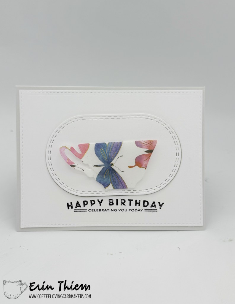 Hello, Erin here, with another Creative Chaos celebrating my love of white on white. For today’s card I used a piece of Pink Fresh washi on vellum with a Sizzix tea cup die, Papertrey Ink sentiment and a Pink Fresh essentials die. I love the simplicity of the card.