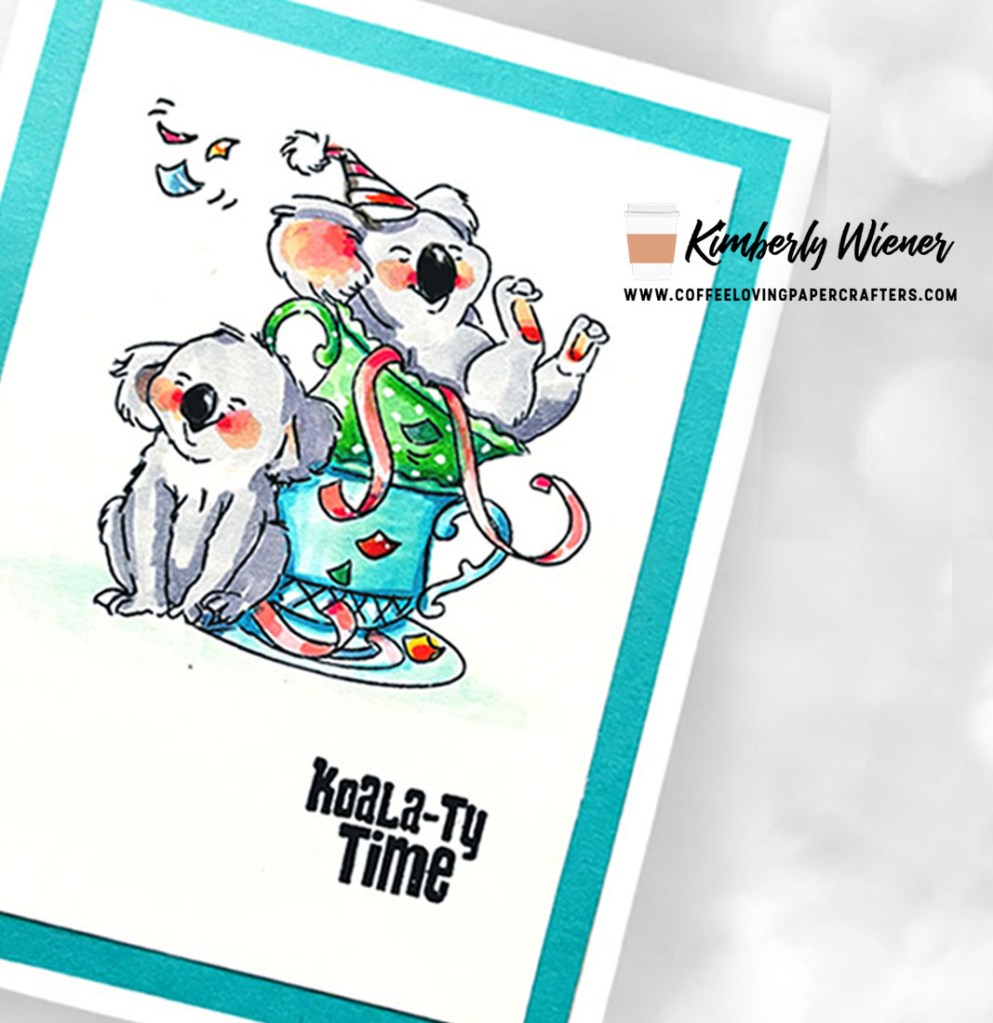 Koala-ty Time: For the second card I stamped the sitting koala on light weight paper and fussy cut it to use it to mask over the image of the koala on the tea cups. I placed the koala in teacups over the masking and stamped. These images have such an infectious smile.