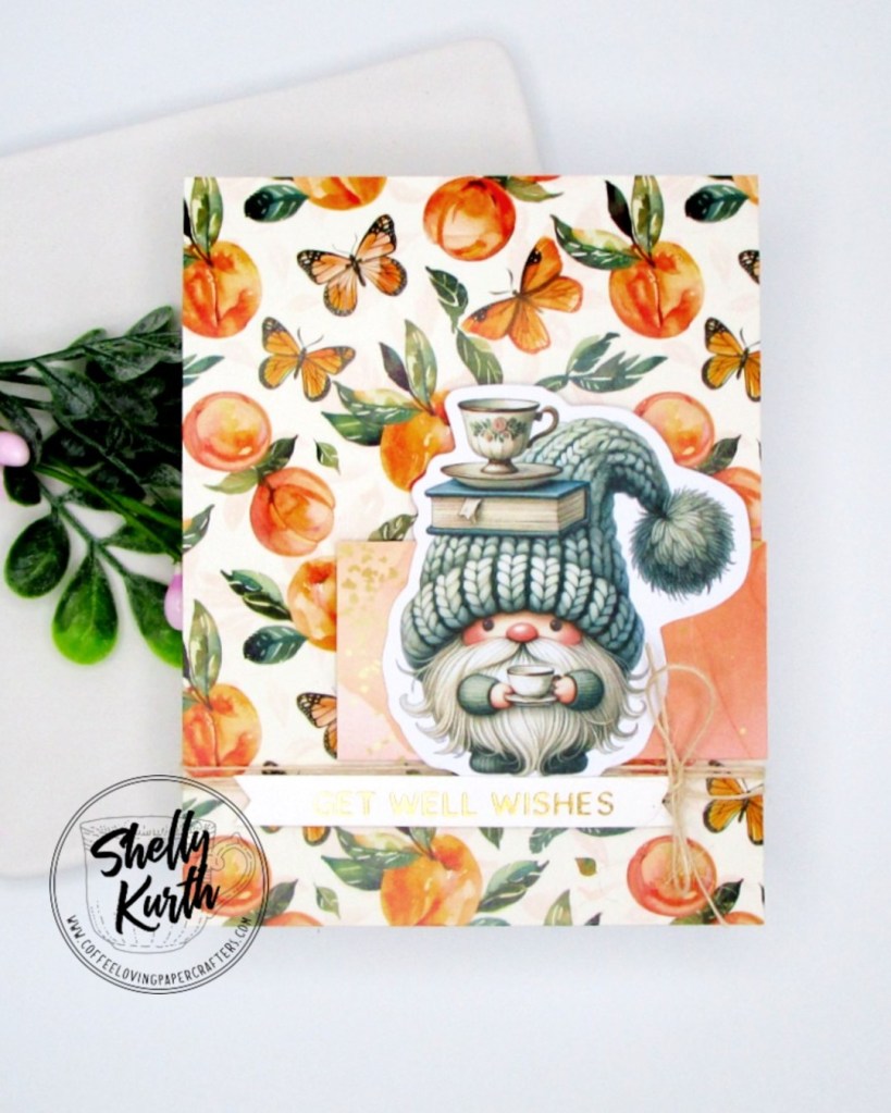 Products used: Not 2 Shabby- Tea Lovin’ Gnomes ephemera, Watercolor Peaches paper pad.