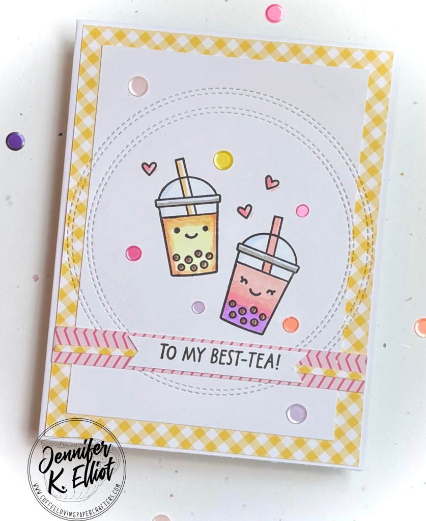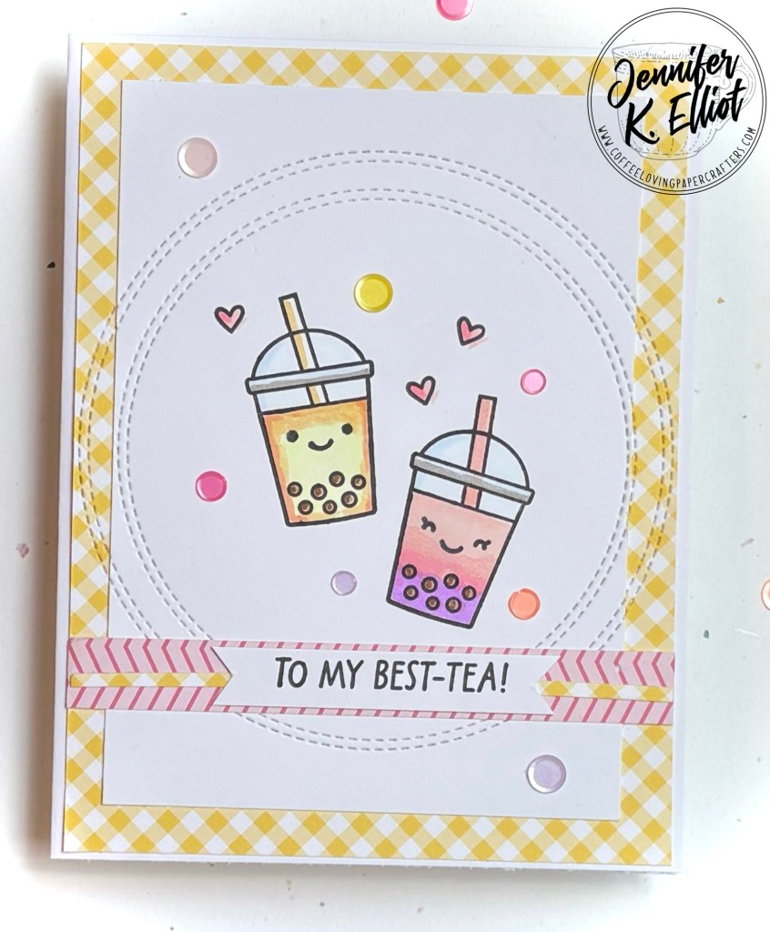 Lawn Fawn’s Year Fifteen stamp set has the cutest cups for an easy cool beverage theme. I paired the set with Lawn Fawn Just Stitching Double Circle dies for a very simple summer card.