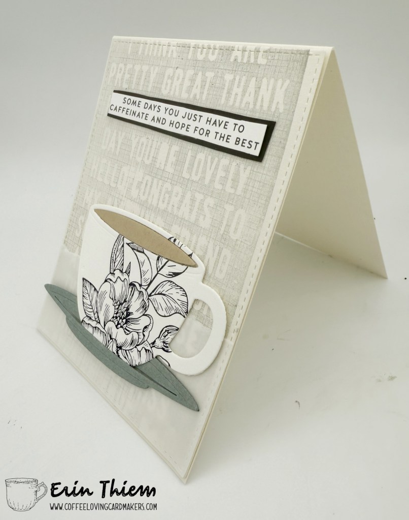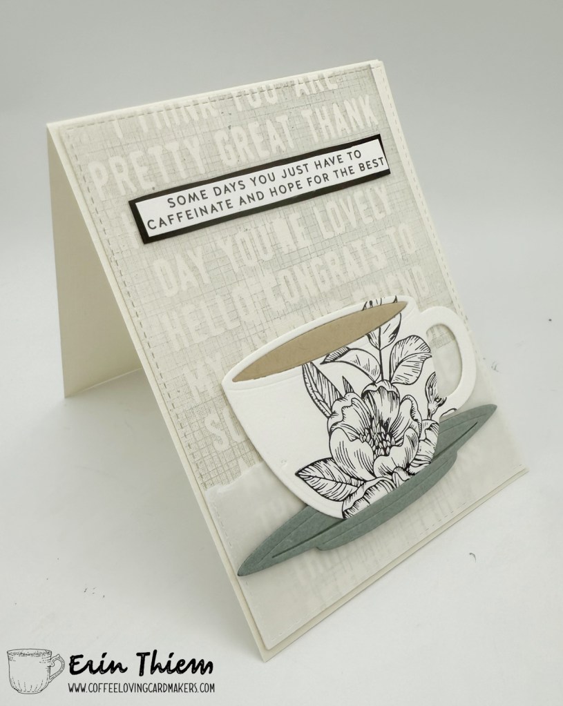 Hello, Erin here for another Creative Chaos post. I used a piece of letterpress for the Lil Inker Designs coffee die cut over a stamped Concord and 9th background and sentiment strip from Simon Says.
