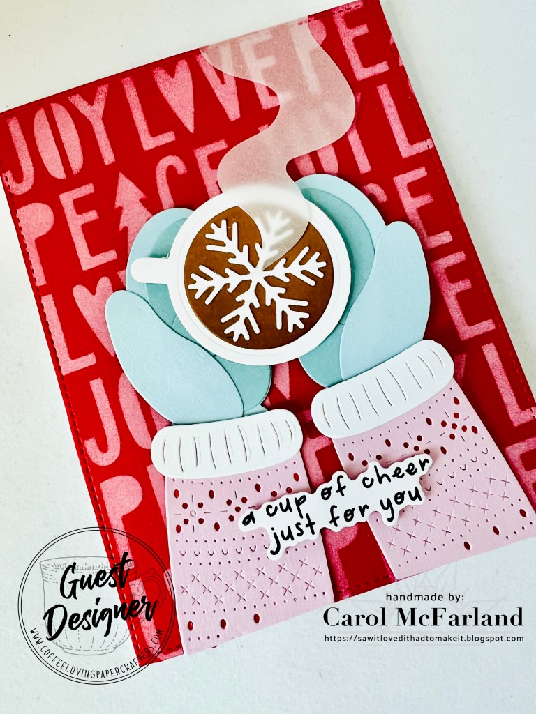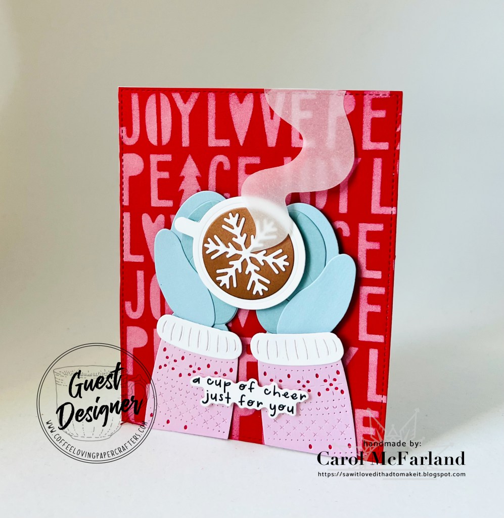 Hello! I am so happy to be back again this month with another card for Coffee Loving Cardmakers. As we get closer to December and Christmas, this potentially chilly time can definitely call for a hot cocoa or coffee. Also, I couldn’t wait to try out this die set for the upcoming season. Here’s my card: