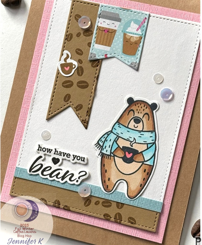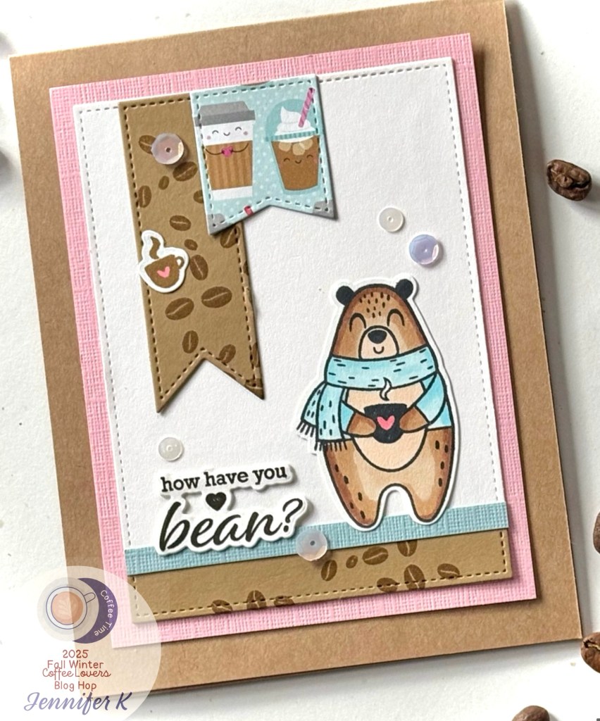 The scattered little coffee beans included in the Coffee Critters stamp set makes creating custom patterned paper easy- gotta love that!